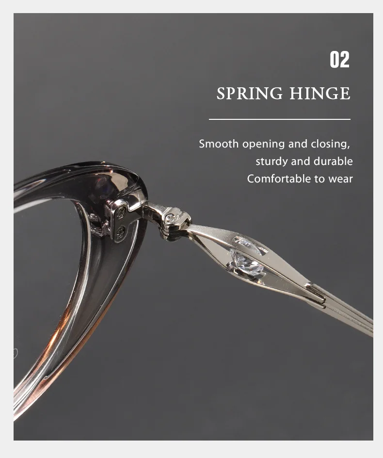 Frame Material: Crafted from durable TR 90 and lightweight alloy with spring hinge temples for added comfort. These materials ensure flexibility and resilience, making them ideal for everyday wear.