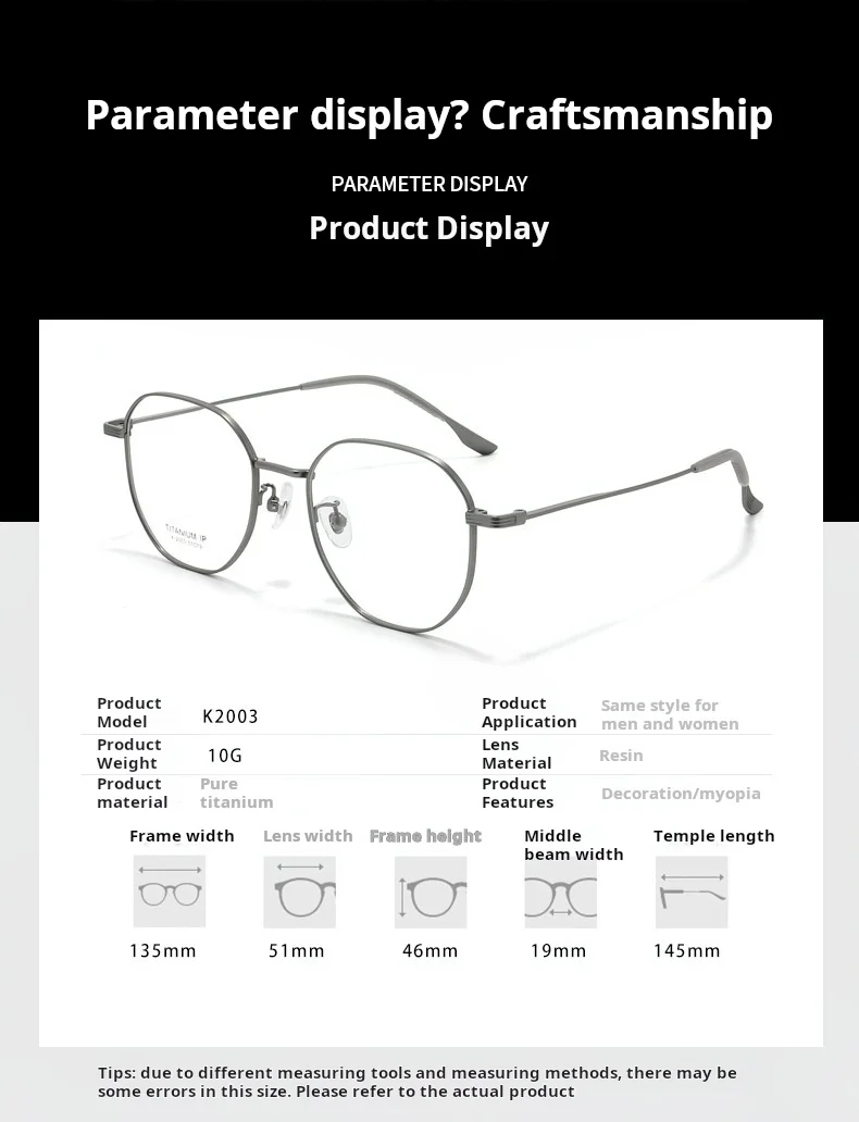 Crafted from premium titanium alloy, these eyeglasses offer a lightweight and comfortable fit without compromising on durability. The polygon square design adds a contemporary touch, making them an ideal accessory for any outfit, whether you're at work or enjoying a casual day out.