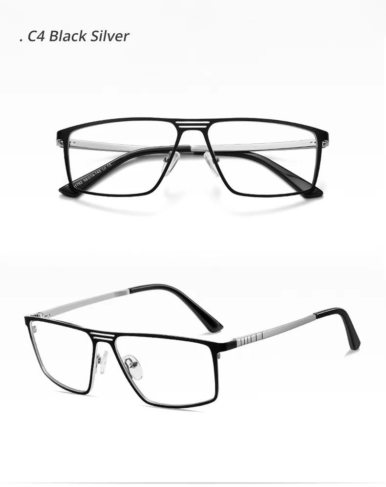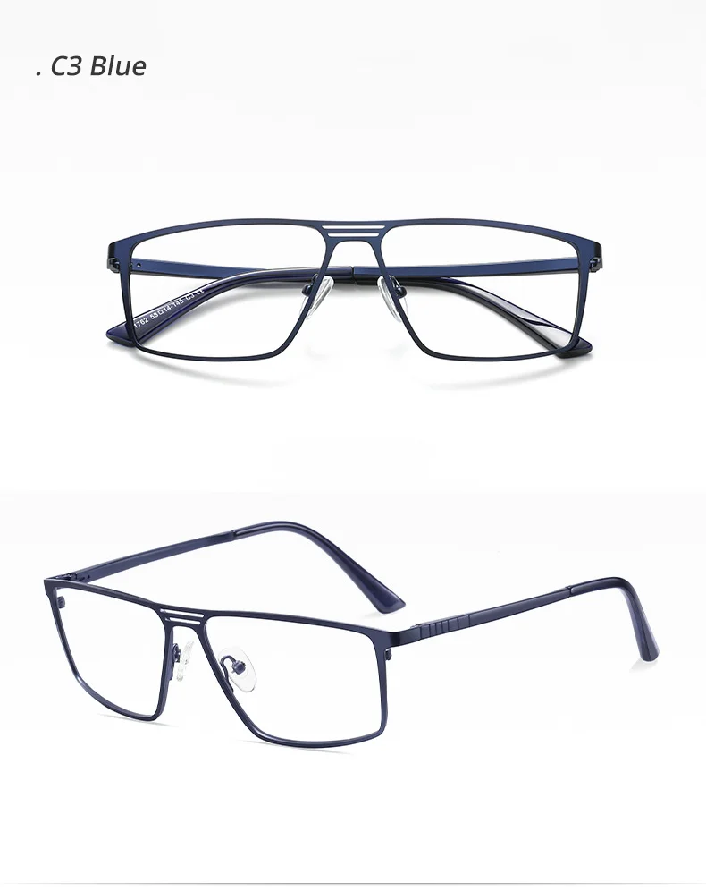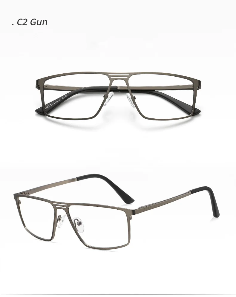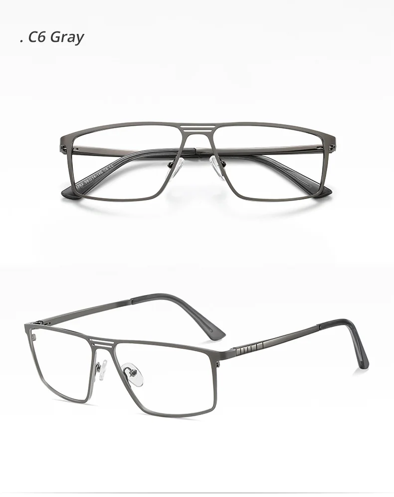 Crafted from high-quality alloy, these frames not only offer durability but also a lightweight feel, ensuring comfort throughout the day. The square design with a double bridge adds a trendy touch, making these eyeglasses suitable for both professional and casual settings.