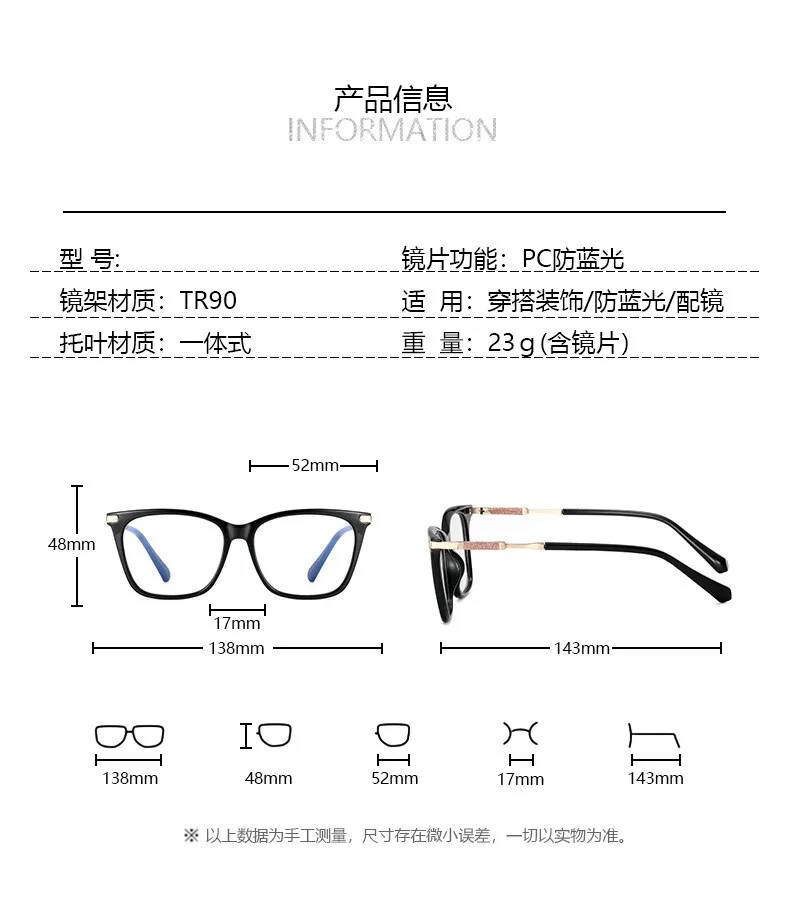 Crafted from high-quality TR 90 and titanium materials, these glasses are lightweight and durable, ensuring exceptional comfort even during prolonged use. With a frame width of 138mm, they provide a snug fit without compromising on style.