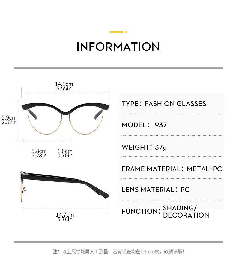 These glasses not only meet your vision needs but also align with your fashionable sensibilities. The stylish cat-eye design complements various face shapes and outfits, making them perfect for everyday wear.