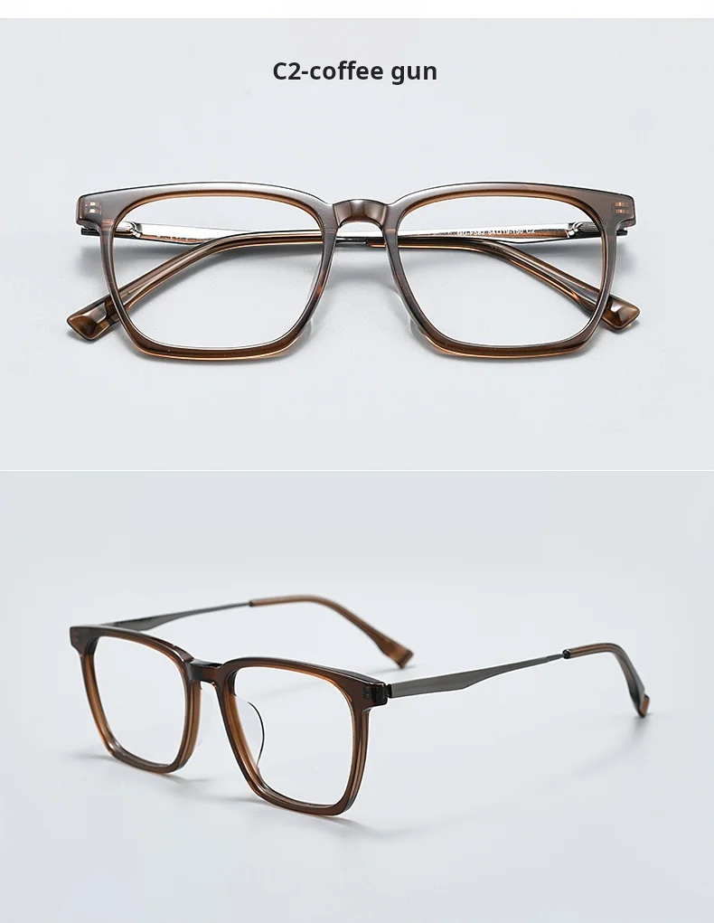Introducing the Yimaruil Men's Full Rim Square Acetate Titanium Eyeglasses, model number 365821. These stylish eyeglasses are expertly crafted from high-quality acetate, providing durability and a lightweight feel. With a frame width of 141mm, these glasses are designed to fit comfortably and securely, making them perfect for daily wear.
