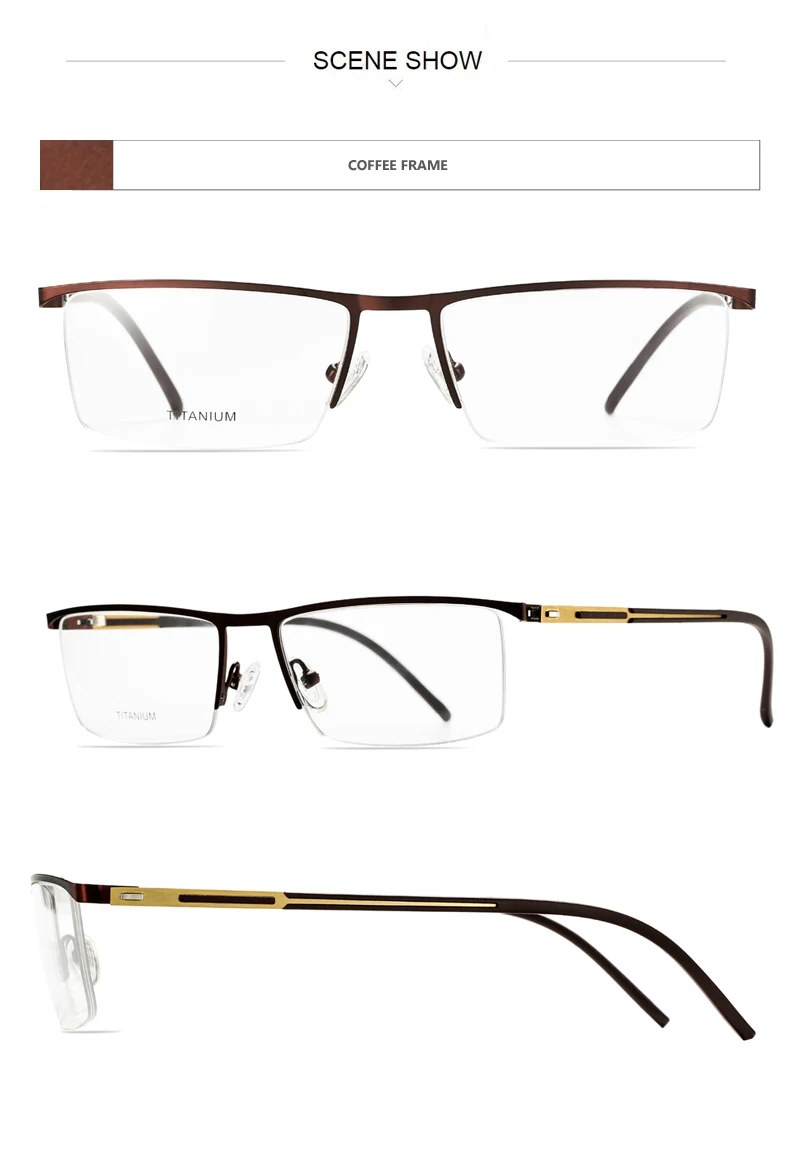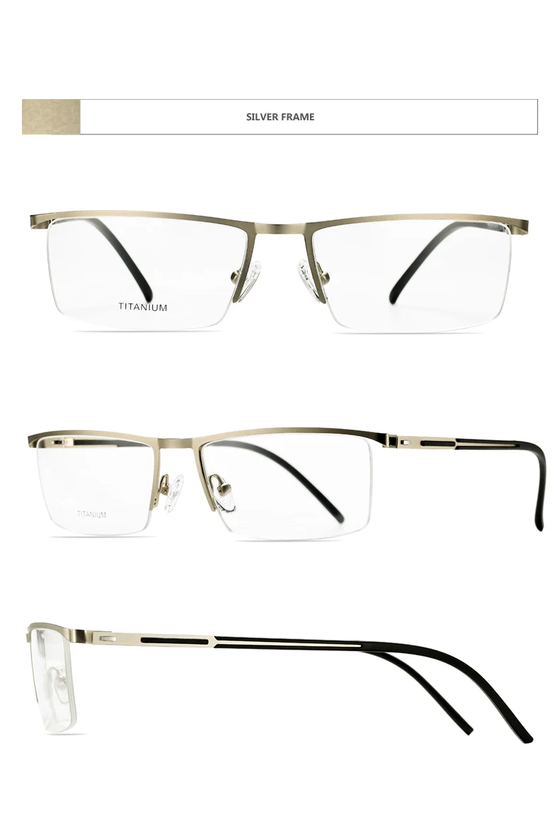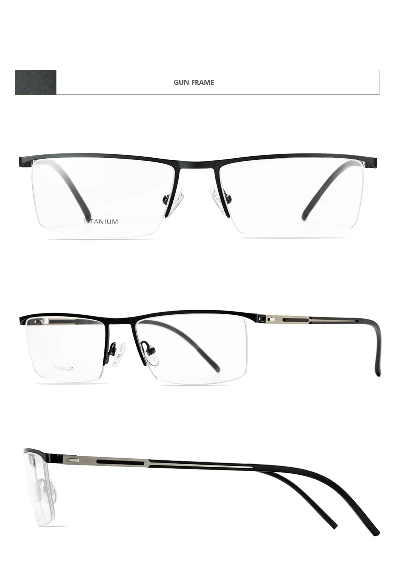 Oveliness Men's Semi Rim Square Brow Line Titanium Alloy Eyeglasses - Model Number: 379857