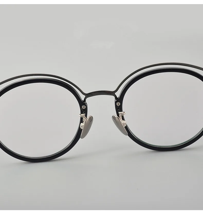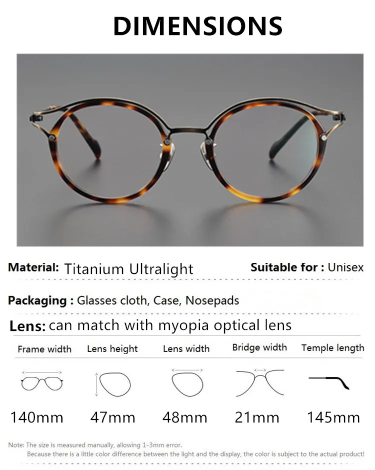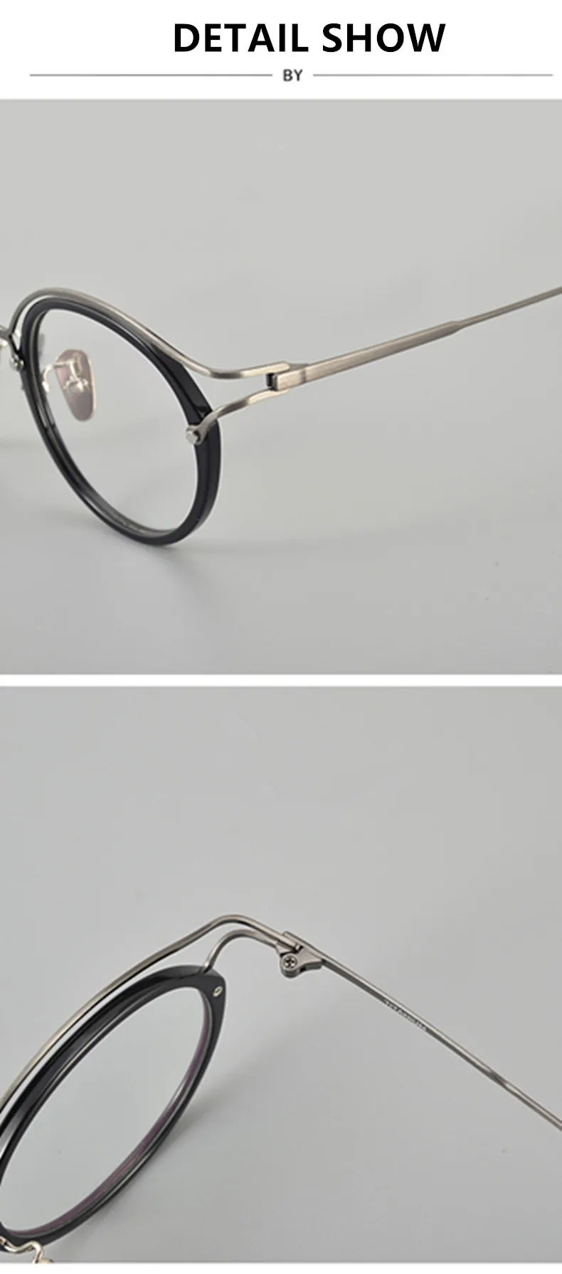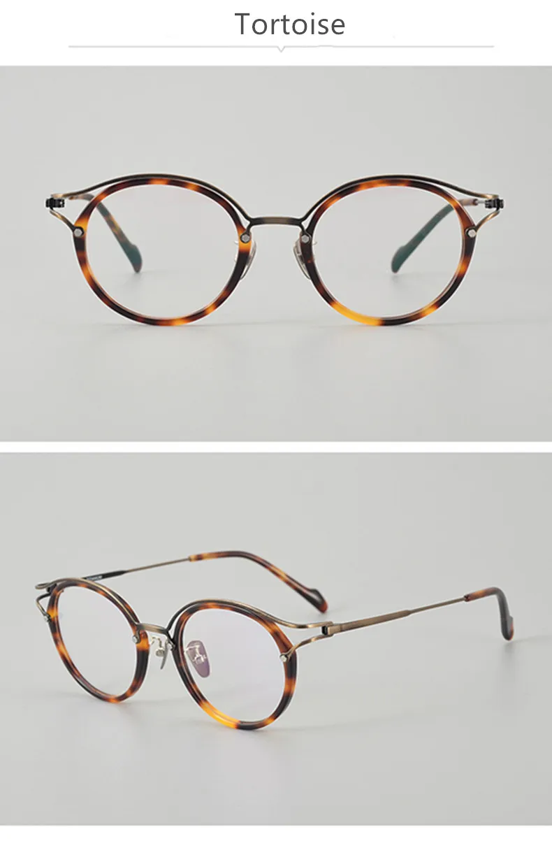 Crafted with a unique combination of high-quality titanium and durable acetate, these eyeglasses offer a lightweight feel without compromising on sturdiness. The full rim round design is not only fashionable but also ideal for both men and women, making these glasses truly unisex.