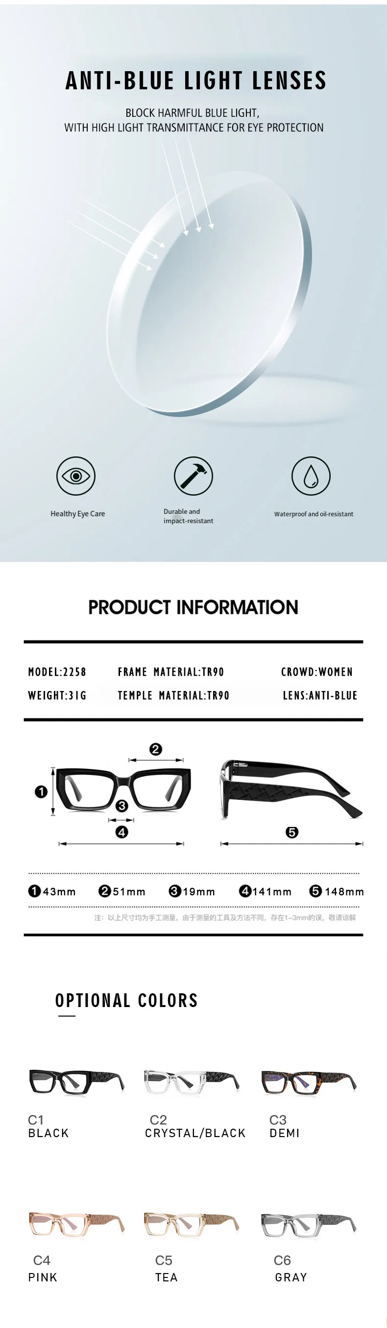 | Material | High-Grade TR90 Thermoplastic |