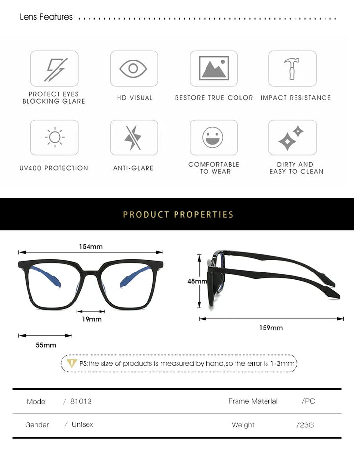 With a lens height of 4.8cm and a lens width of 5.5cm, these oversized square glasses offer a wide field of view, perfect for reading or other close-up tasks. The HMC coating ensures resistance to scratches and smudges, keeping your glasses looking pristine.