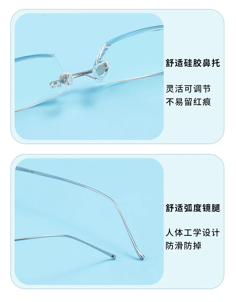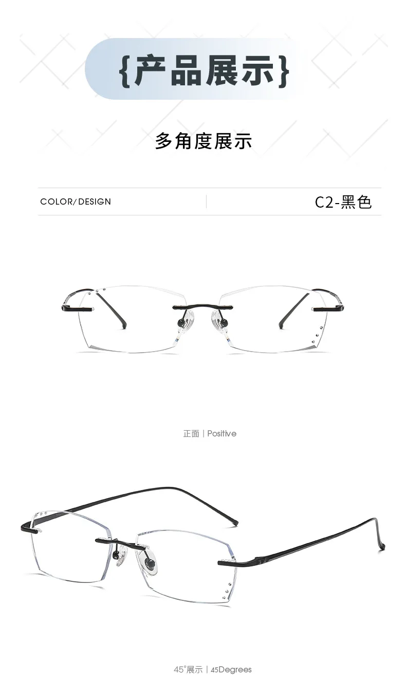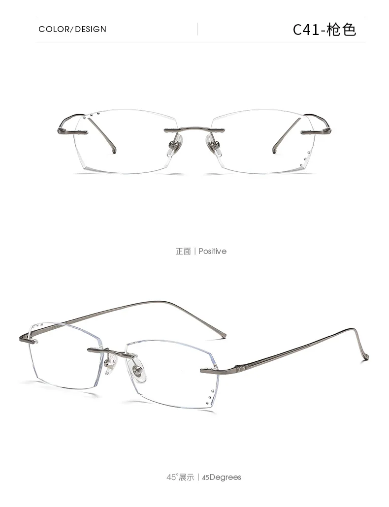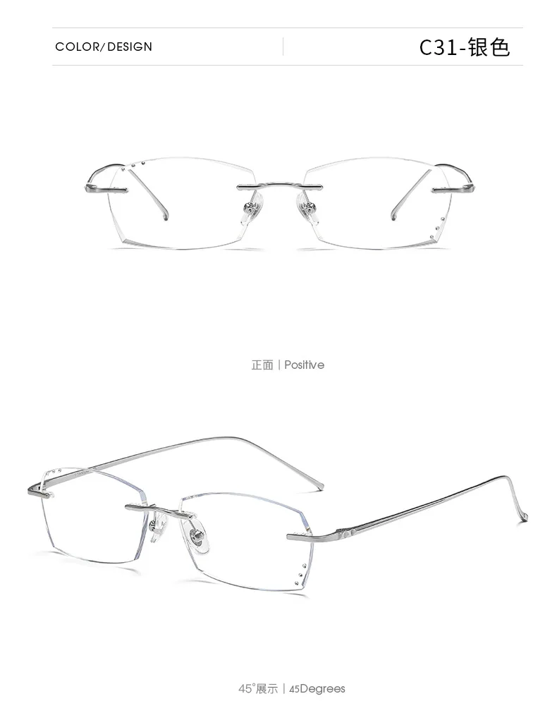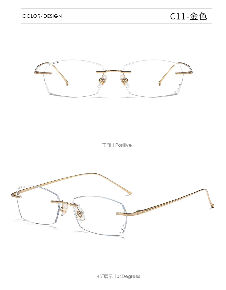 Crafted from high-quality titanium, the frame is not only lightweight but also exceptionally strong. This means you can wear these eyeglasses all day long without feeling weighed down. The rimless design enhances your visual appeal, giving you a modern and sleek appearance.