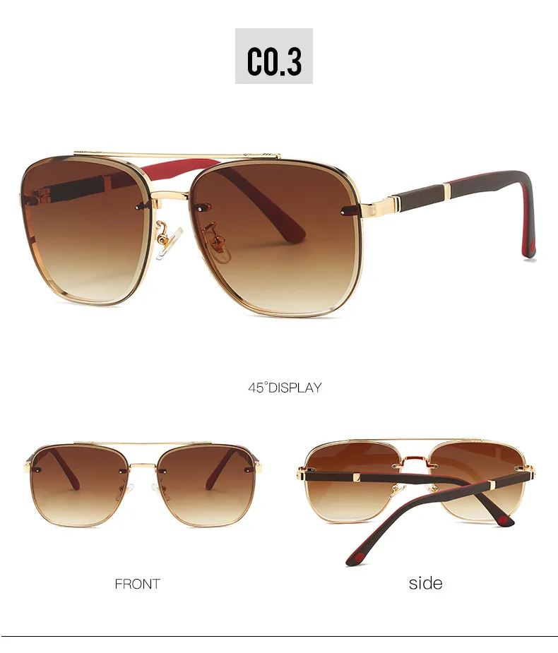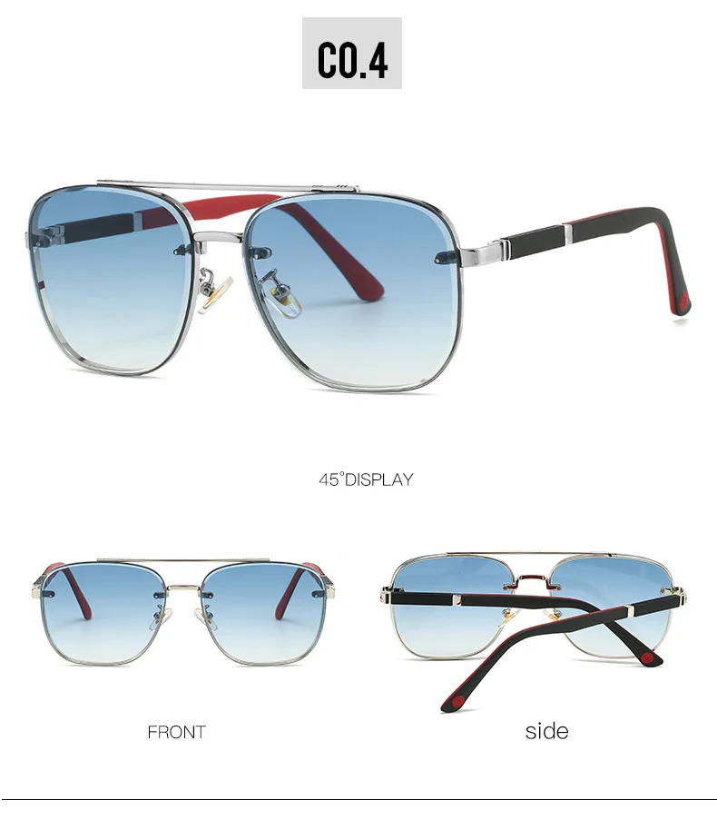 Kocolior 223290 Unisex Full Rim Square Double Bridge Steel Sunglasses