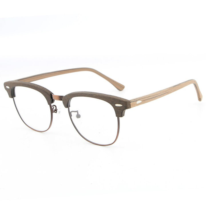 Featuring a solid pattern design, these eyeglasses are crafted with a mix of wood and metal frames, adding a touch of sophistication to your look. The sturdy wooden frame provides durability, while the metal accents add a modern twist.