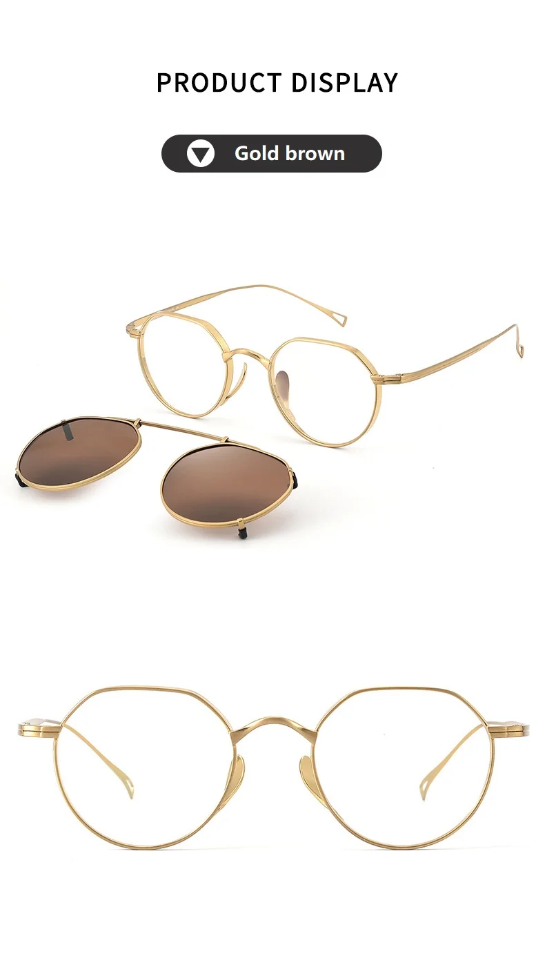 Introducing the Bobbie Unisex Full Rim Flat Top Oval Titanium Eyeglasses with Clip-On Sunglasses (Model Number: 619916). Perfectly blending style and functionality, these glasses are designed to meet the needs of both men and women while providing exceptional comfort and durability.