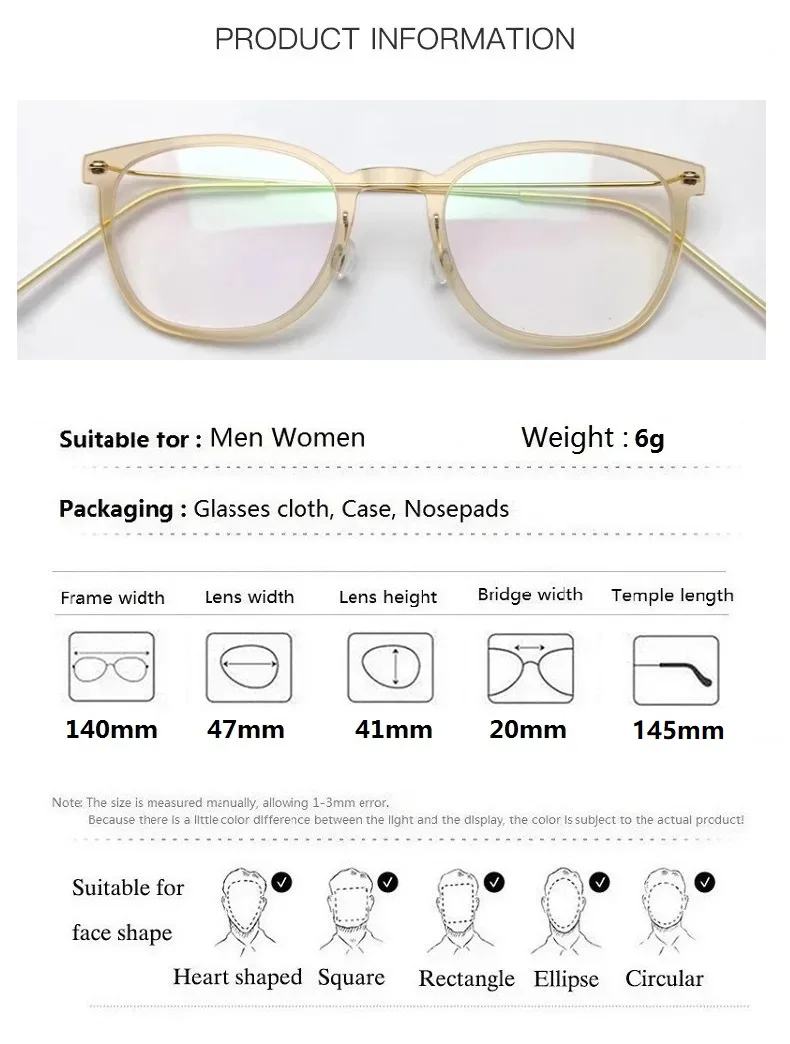 Frame Material: Titanium + Acetate With Screwless Hinge Temples