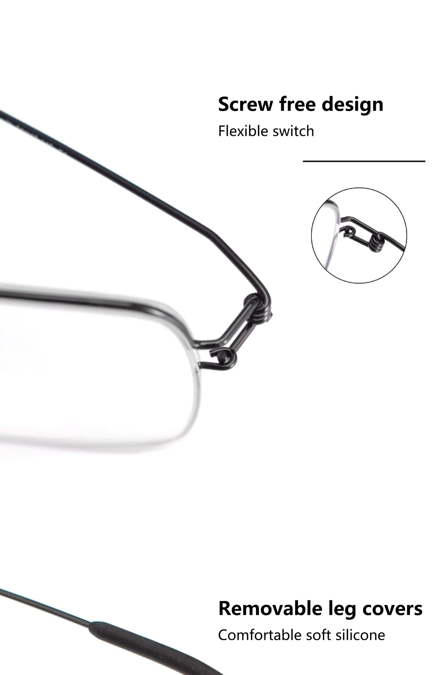 - Premium Titanium Material: The frame is crafted from high-quality titanium, known for its strength and lightweight properties, ensuring comfort throughout the day.