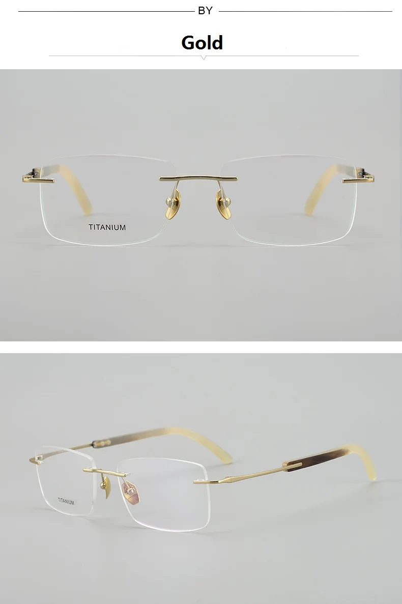 Introducing the Bobbie Unisex Rimless Square Titanium Horn Temple Eyeglasses, model number 921029. These eyeglasses combine style with functionality, making them an excellent choice for both men and women.