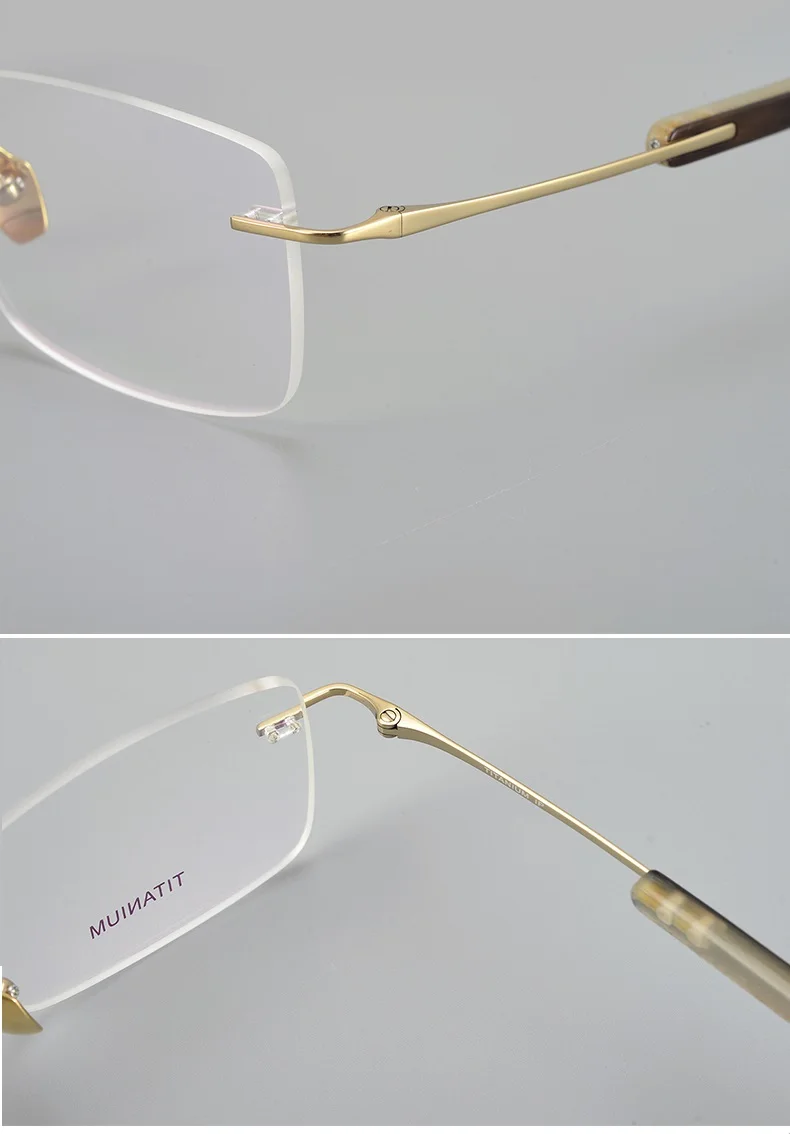 Crafted with premium materials, the rimless square design offers a modern and sophisticated look. The frame is built from durable titanium, ensuring lightweight comfort without compromising on strength. The temple arms are made from high-quality bull horn, adding a unique touch while providing flexibility and comfort during wear.