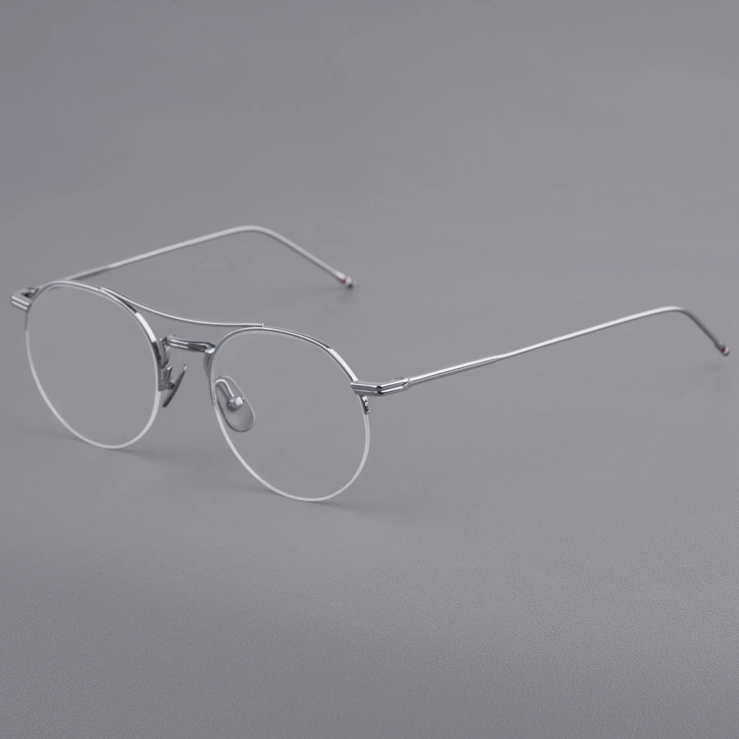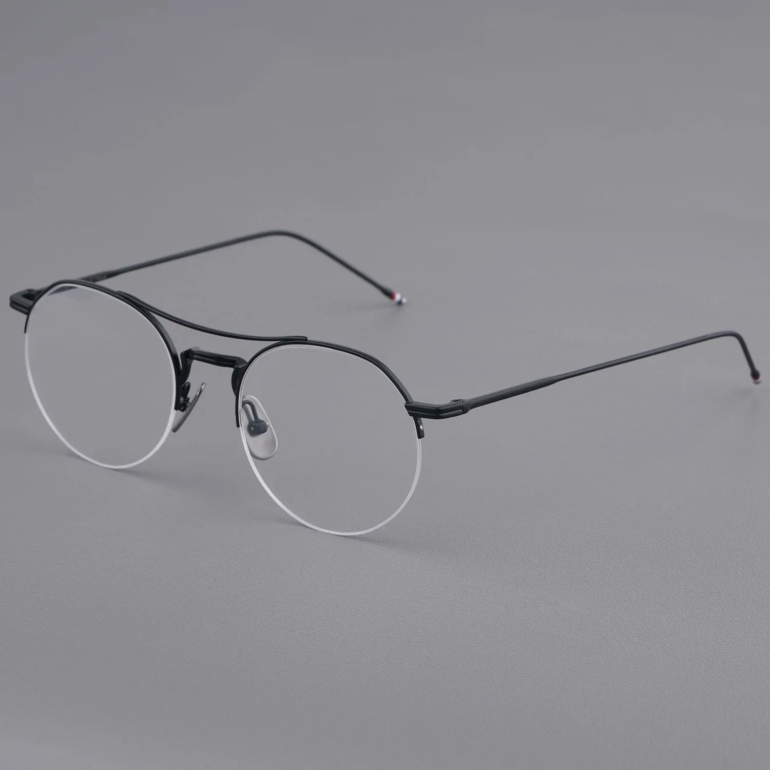 Introducing the Bobbie Unisex Semi Rim Round Double Bridge Titanium Eyeglasses Clip On Sunglasses - a perfect blend of fashion and functionality. Model number **612903**, these eyeglasses are designed for trendsetters who value both aesthetics and quality.