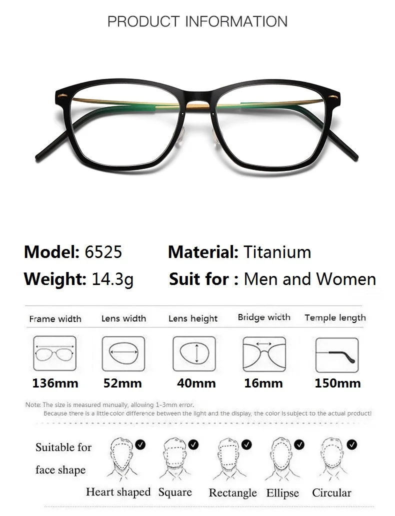 Frame Material: High-quality Titanium + Acetate with Screwless Hinge Temples