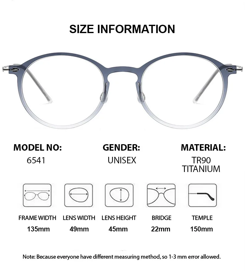 With a frame width of 135mm, these round eyeglasses provide a flattering fit. The sleek construction not only makes a fashion statement but also offers practicality for everyday wear. Whether you're at work, out with friends, or reading at home, these glasses are your ideal companion.
