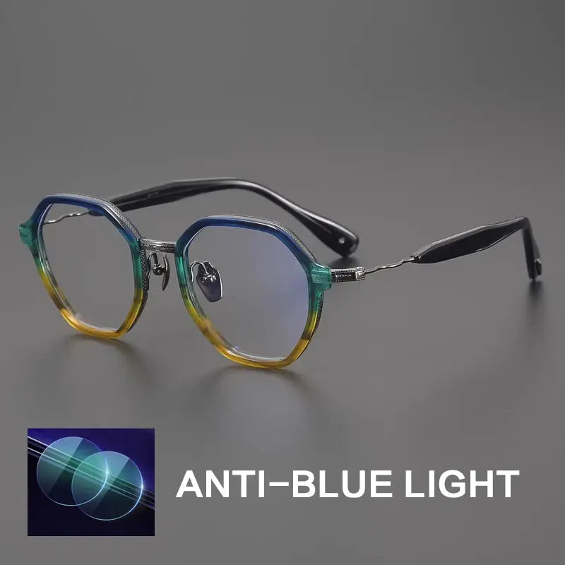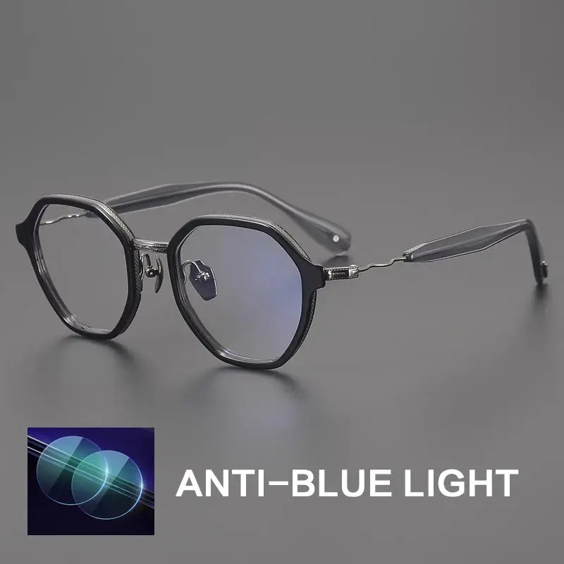 Celebrate the pinnacle of modern eyewear design with a frame that masterfully blends divergent materials and geometries. The Gatenac Unisex Full Rim Polygon Eyeglasses (Model gxyj-892505) are a bold exploration of form. Featuring a thick-cut, multi-faceted acetate front in a unique polygon silhouette, these frames are anchored by sleek, aerospace-grade Titanium temples, creating a high-impact "Techno-Retro" aesthetic for the modern visionary.