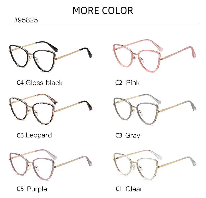 Introducing the Handoer Women's Full Rim Oval Cat Eye TR 90 Alloy Eyeglasses, model number 95825. These eyeglasses beautifully merge style and practical functionality, making them an essential accessory for the modern woman. Featuring an eye-catching cat-eye shape, they elevate your fashion while ensuring comfort and durability for everyday wear.