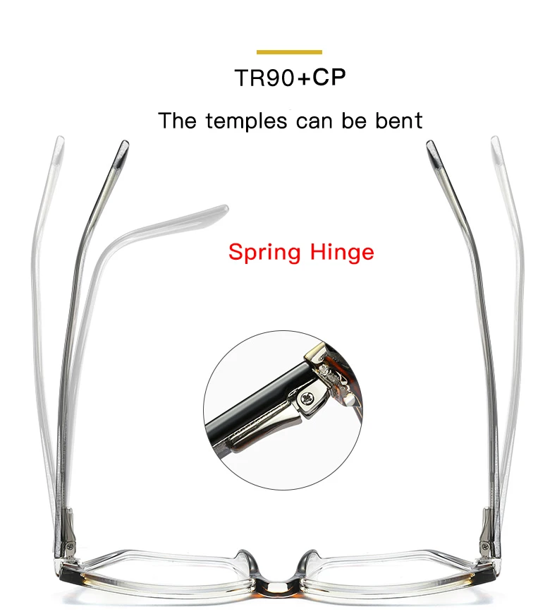 Made from high-quality TR 90 and durable alloy, these eyeglasses offer lightweight comfort without compromising on durability. The innovative spring hinge temples provide flexibility and an optimal fit, ensuring long-lasting wear throughout the day.