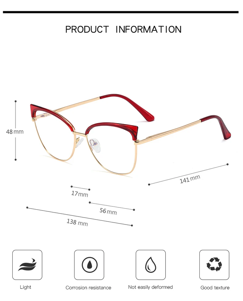 Crafted from a high-quality combination of Alloy and TR 90 material, these eyeglasses are not only stylish but also incredibly durable and lightweight. The full rim cat eye design adds a touch of modern flair, making them a perfect accessory for any outfit.