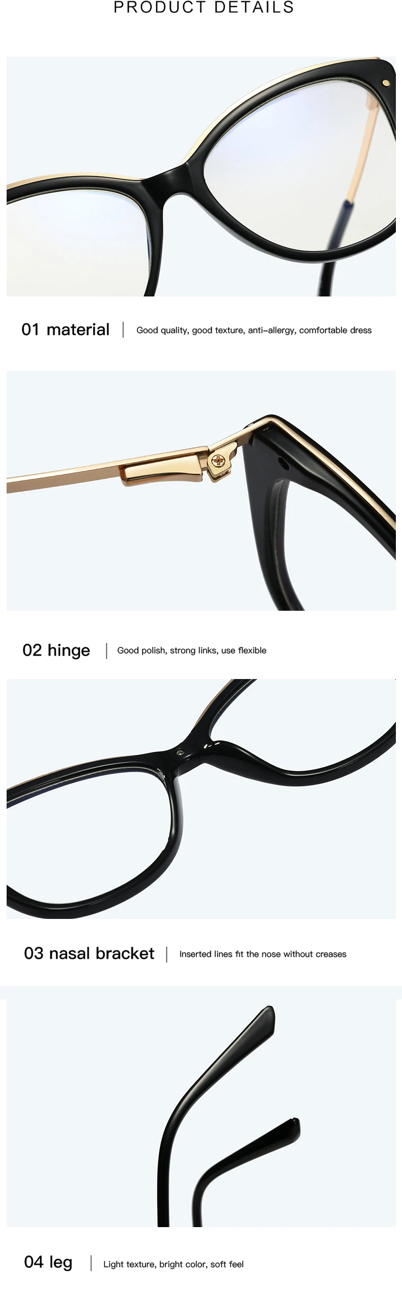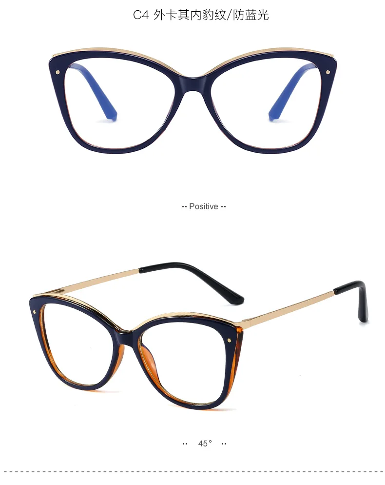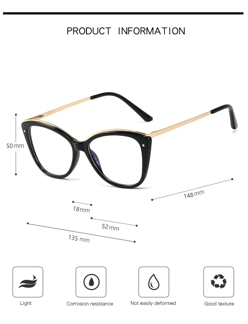 These eyeglasses combine chic aesthetics with functional design. Crafted from premium TR 90 alloy, the frame offers lightweight durability while ensuring maximum comfort throughout your day. The spring hinge temples provide flexibility for a perfect fit, making these eyeglasses ideal for both casual and professional settings.
