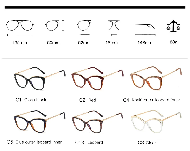 With a frame width of 135mm, these eyeglasses are designed to fit a variety of face shapes. The elegant cat-eye design adds a touch of sophistication, making them perfect for any fashion-forward outfit.