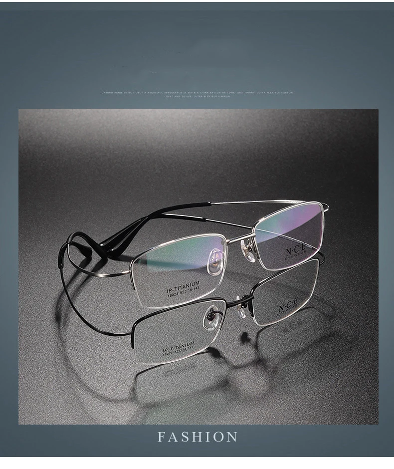 Introducing the Hdcrafter Unisex Semi Rim Oval Square Titanium Eyeglasses, model number 618024. These eyeglasses combine modern style with high functionality, offering a sophisticated look for both men and women.