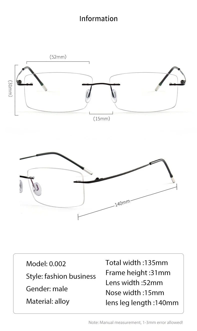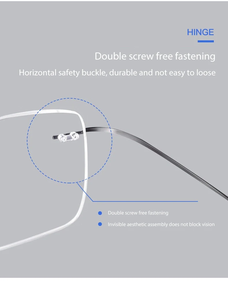 Discover the perfect blend of style and functionality with the Hotochki Women's Rimless Square Titanium-Alloy Eyeglasses, model number 491002. Crafted for contemporary women who prioritize both fashion and quality, these eyeglasses feature a sleek rimless design that enhances your facial features while delivering exceptional comfort.
