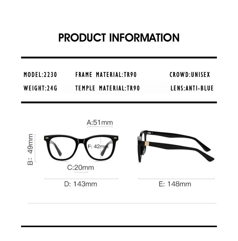 • Frame Width: 143mm, Lens Width: 51mm, and Lens Height: 49mm, providing a great fit for various face shapes.