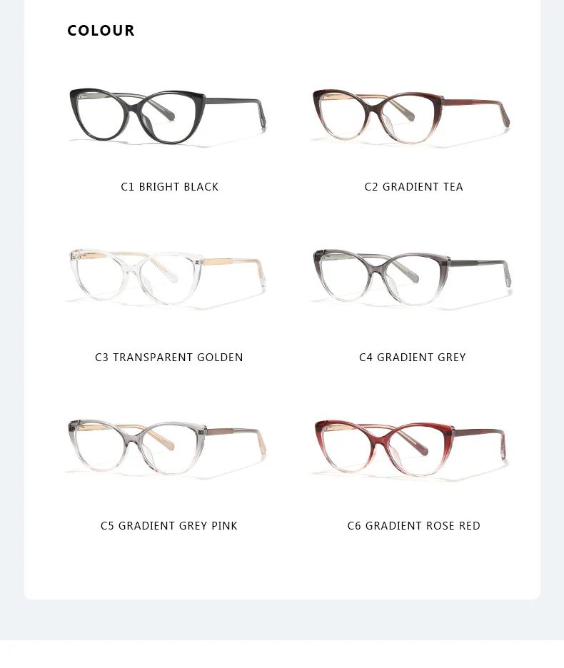 • Elegant Design: The full rim cat-eye shape complements various face types and adds a touch of sophistication to your look.