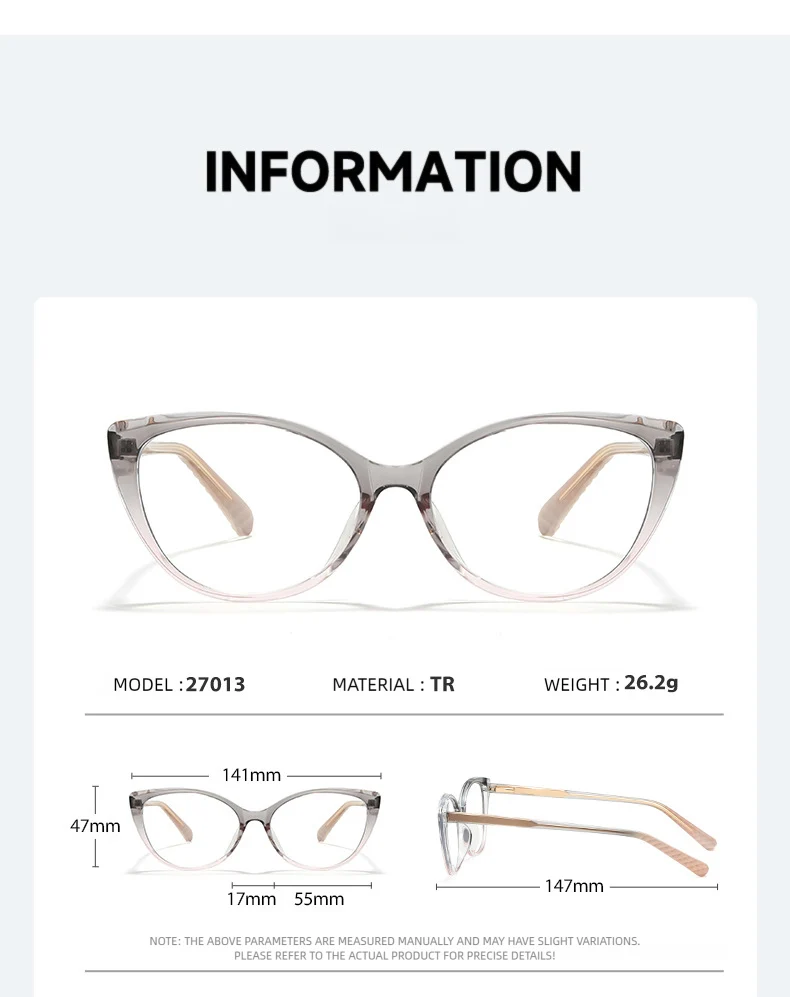 Engineered with high-quality TR 90 and alloy materials, this eyewear offers exceptional durability and a lightweight feel, perfect for all-day wear. The chic cat-eye design not only enhances your style but also provides a comfortable fit while ensuring your visual clarity.