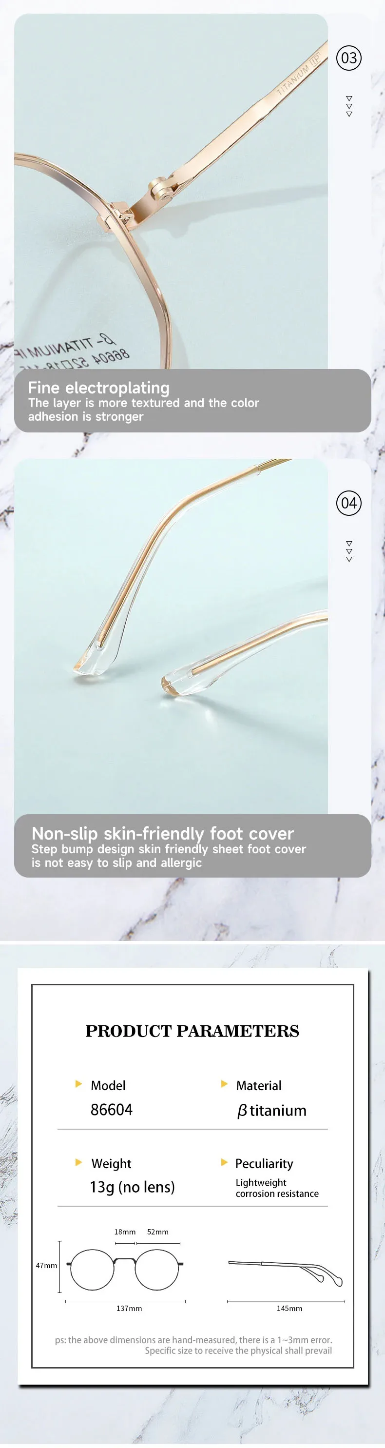 These exquisite reading glasses, designed specifically for women, offer not only superior vision but also a modern aesthetic that enhances any look. Crafted from high-quality titanium, these glasses are not only lightweight but also incredibly durable, ensuring they can withstand daily wear and tear.
