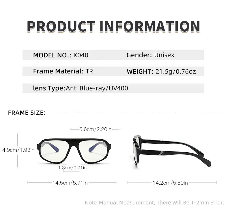 - UV400 Protection: The CR-39 lenses feature advanced UV protection, shielding your eyes from harmful rays.