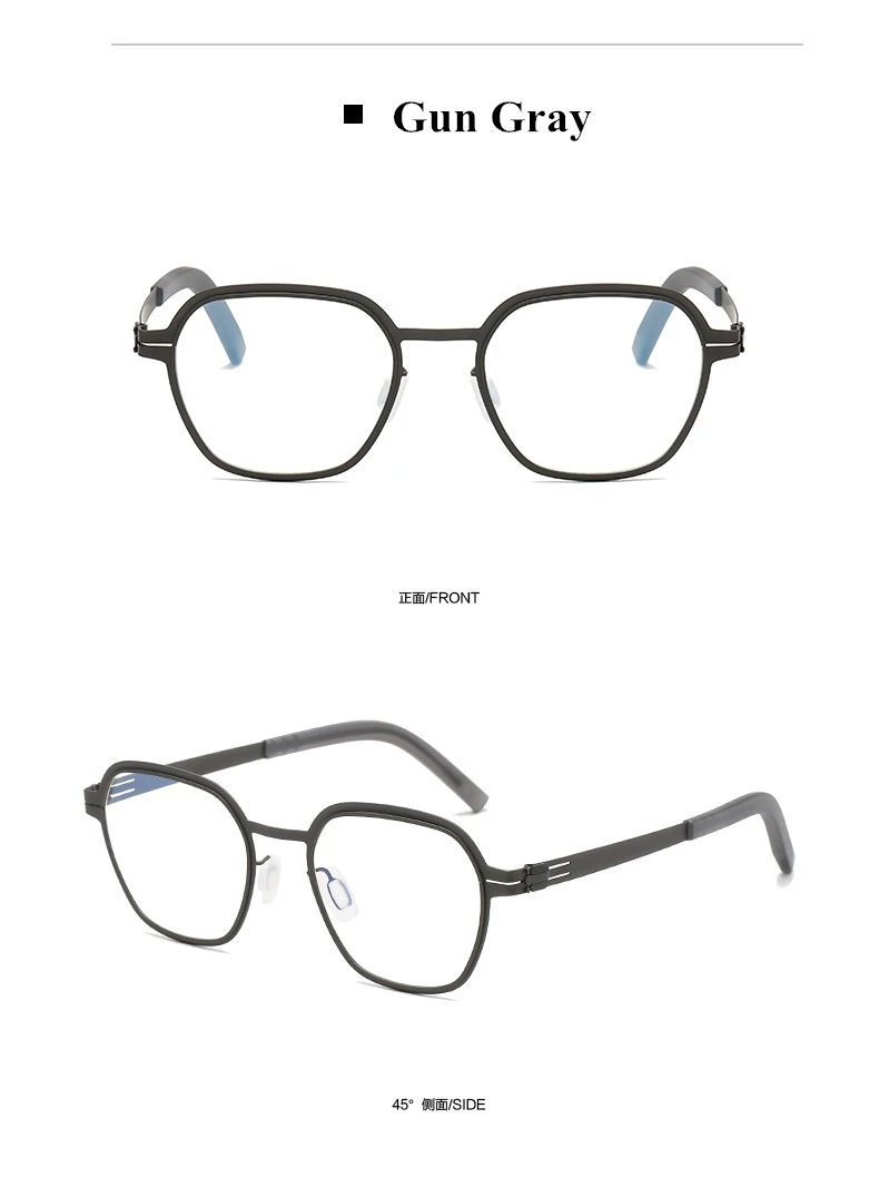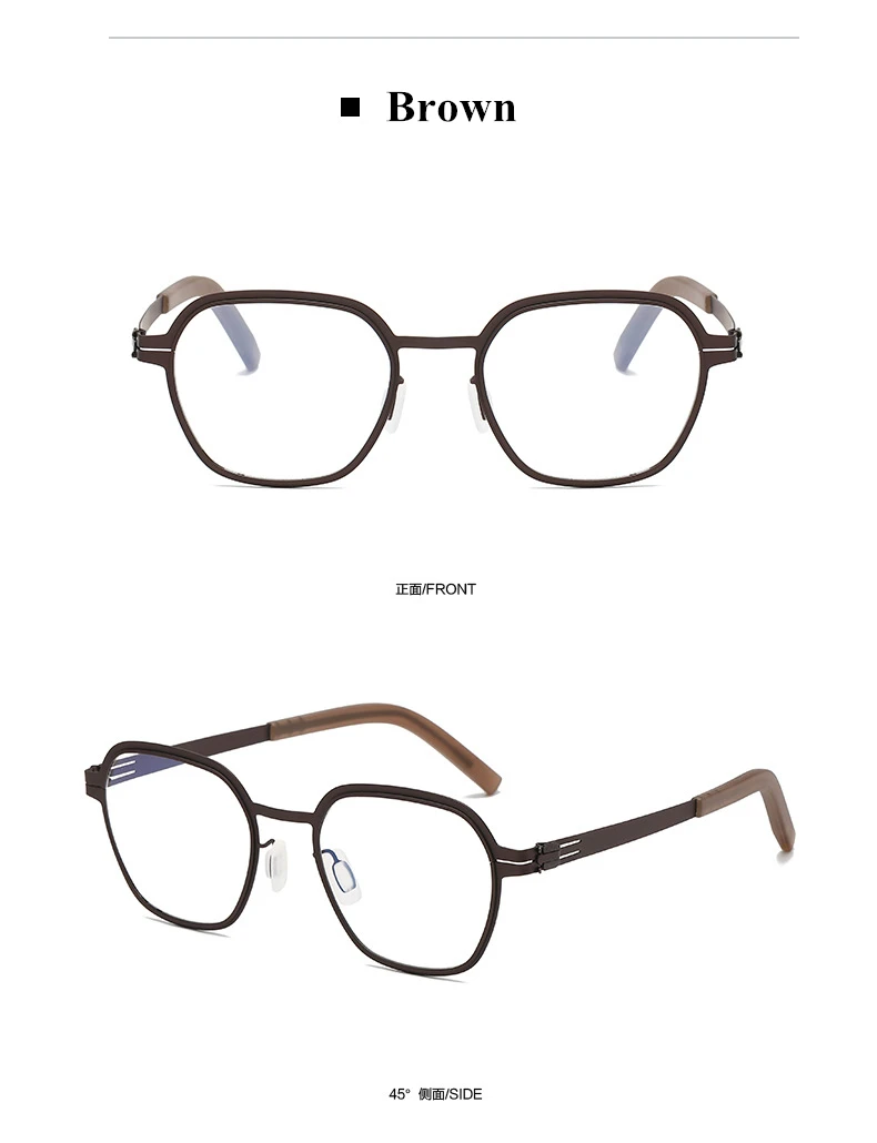 Crafted from high-quality stainless steel, these eyeglasses are designed for durability and comfort. The screwless hinge temples enhance their sleek aesthetic and provide a snug fit, making them ideal for daily wear.
