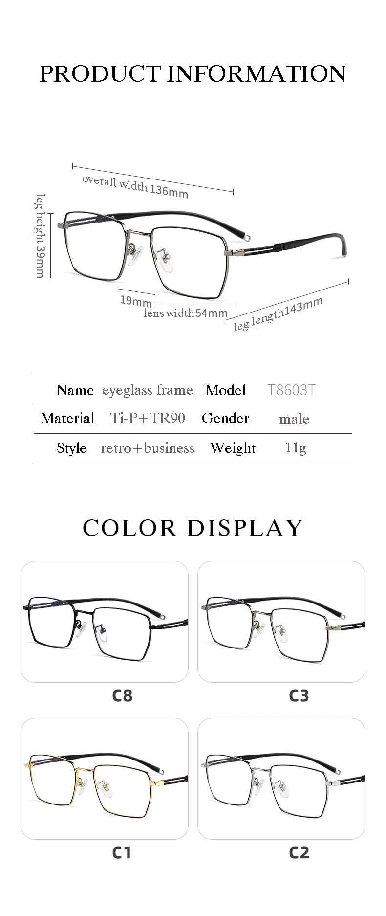 Crafted with precision, the frame measures 136mm in width, providing a snug yet comfortable fit. The luxurious titanium material guarantees that these eyeglasses are not only stylish but also offer superior strength and durability.