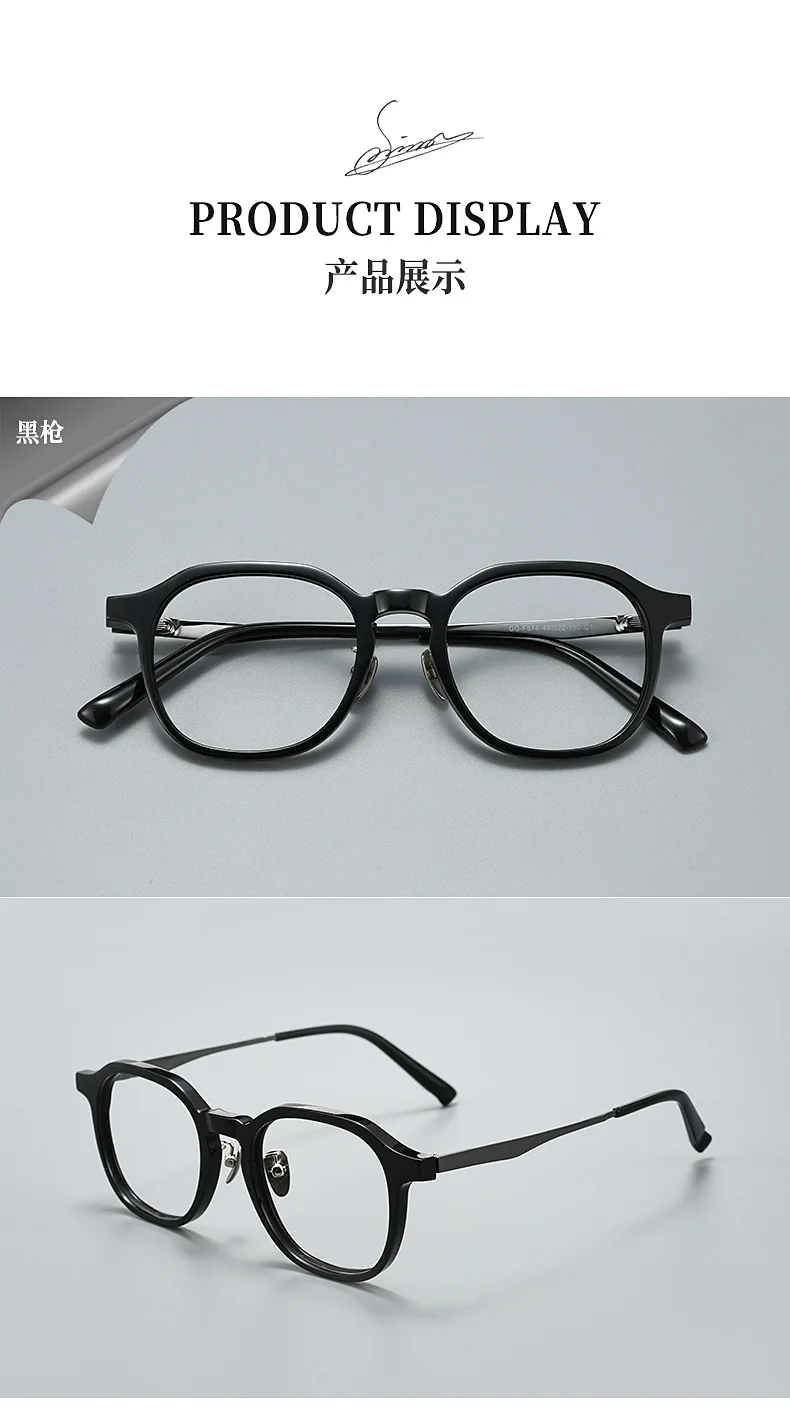 Manufactured in Mainland China, these eyeglasses not only meet the highest certification standards but also offer excellent craftsmanship. The combination of acetate and titanium means they're not only fashionable but long-lasting, ensuring you look great while seeing clearly.