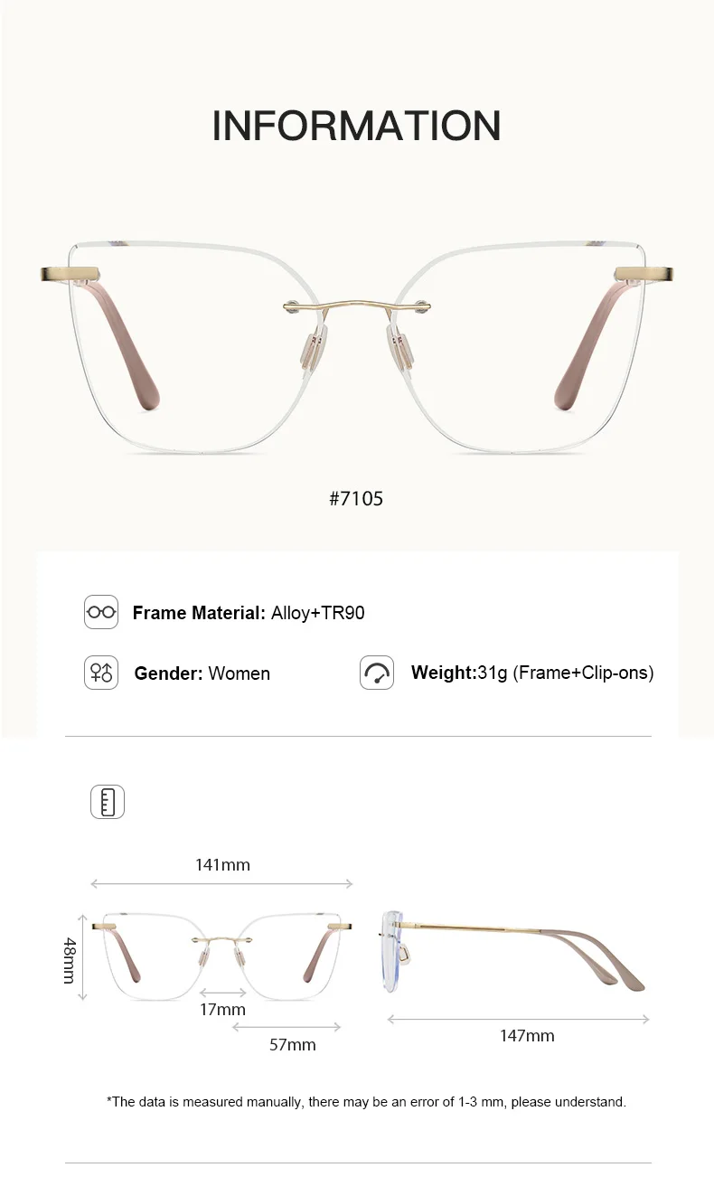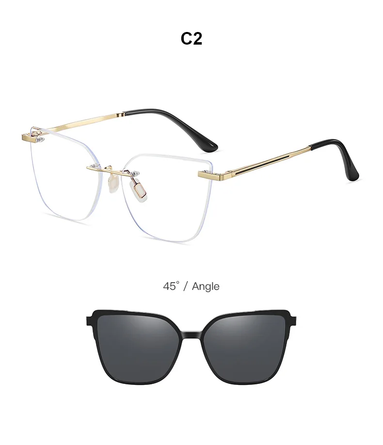 Ethereal Sophistication: The Rimless Cat Eye & TR 90 Sun Clip