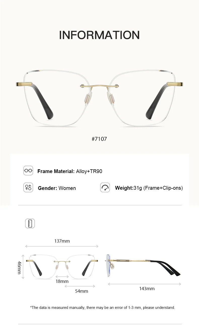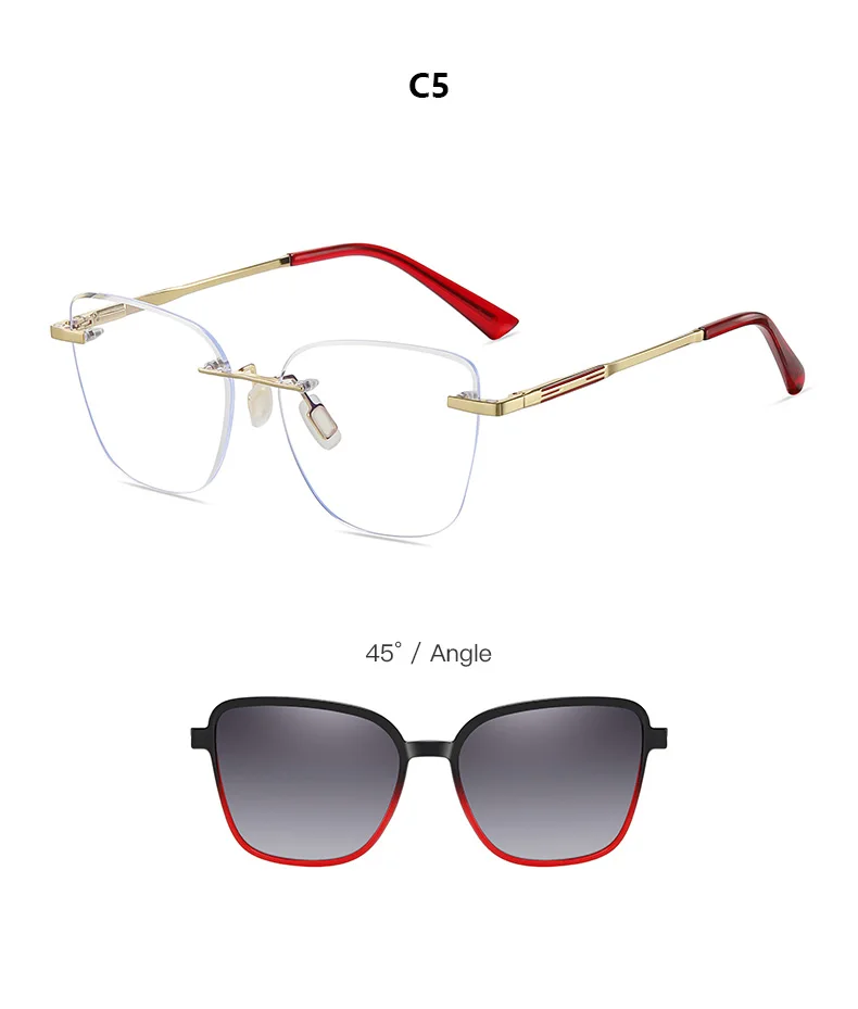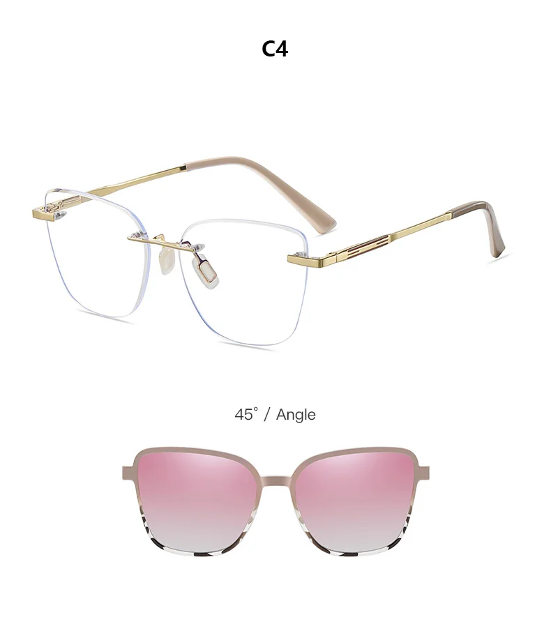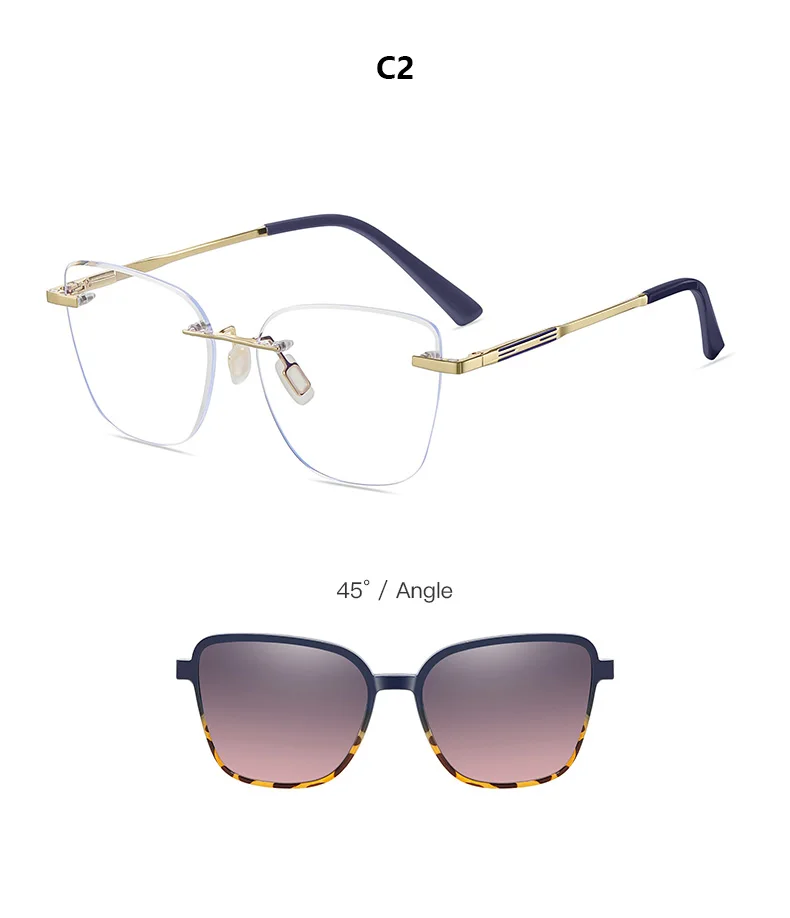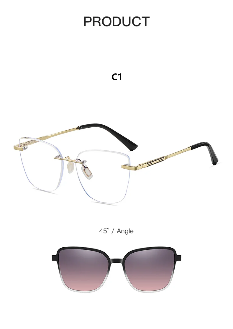 Master the art of the "invisible" frame with a geometric edge. The Gmei Optical 710729 is a high-fashion Women’s frame featuring a Rimless Square Cat Eye profile. By combining a "boxed" square lens shape with a subtle cat eye lift, this model provides a structured yet airy aesthetic. Forged with a durable Alloy bridge and temples, the design is elevated by a precision-fit one piece polarized TAC sun clip that transforms the frame into a bold sunglass statement in a single second.