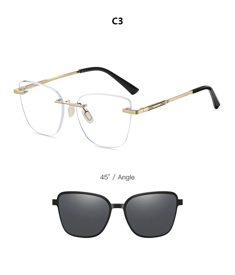 Gmei 710729: Geometric rimless. Polarized clip on versatility. Professional authority.