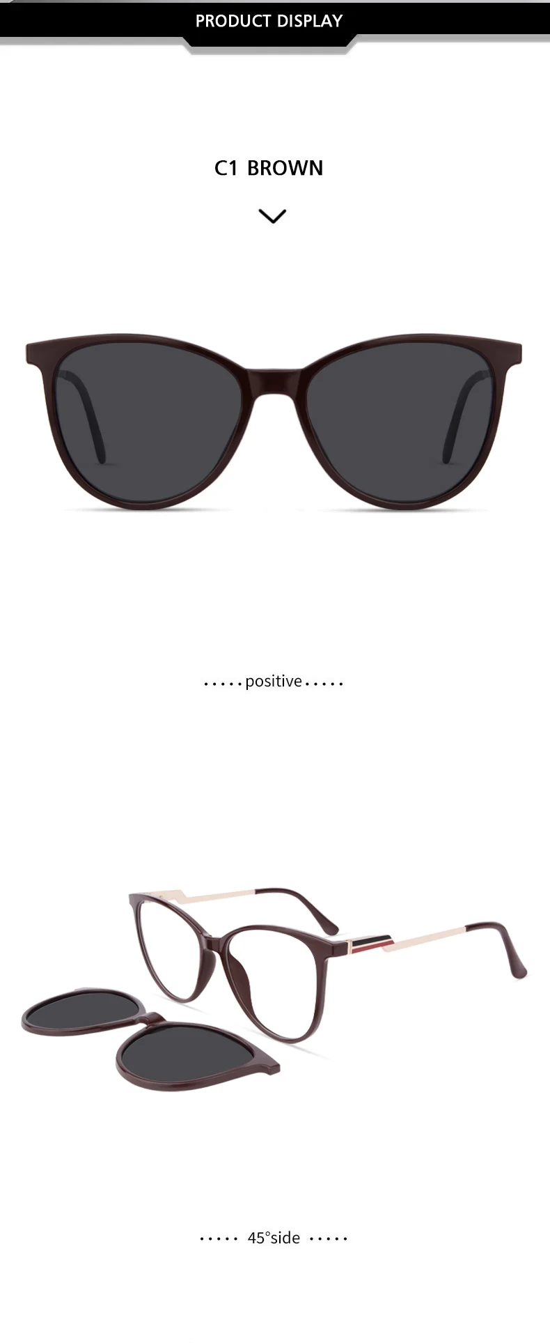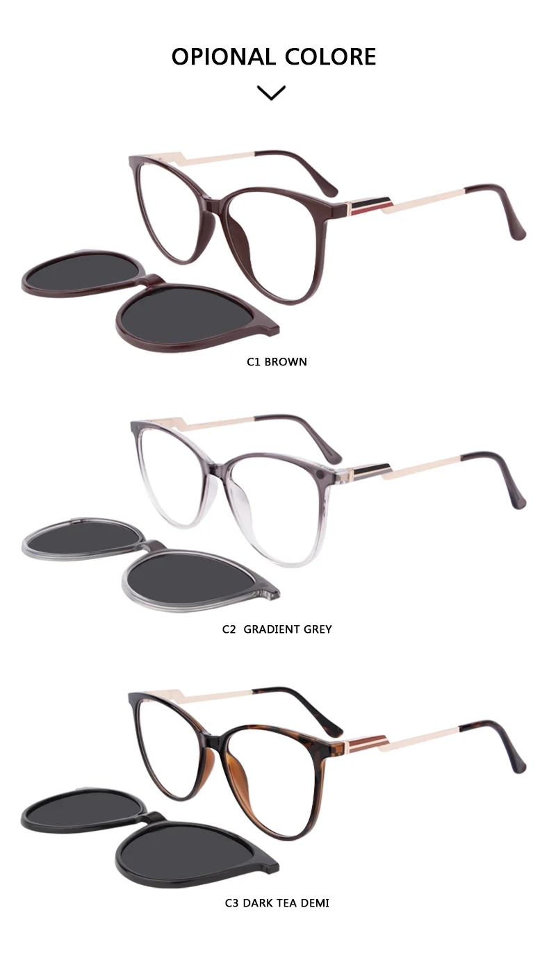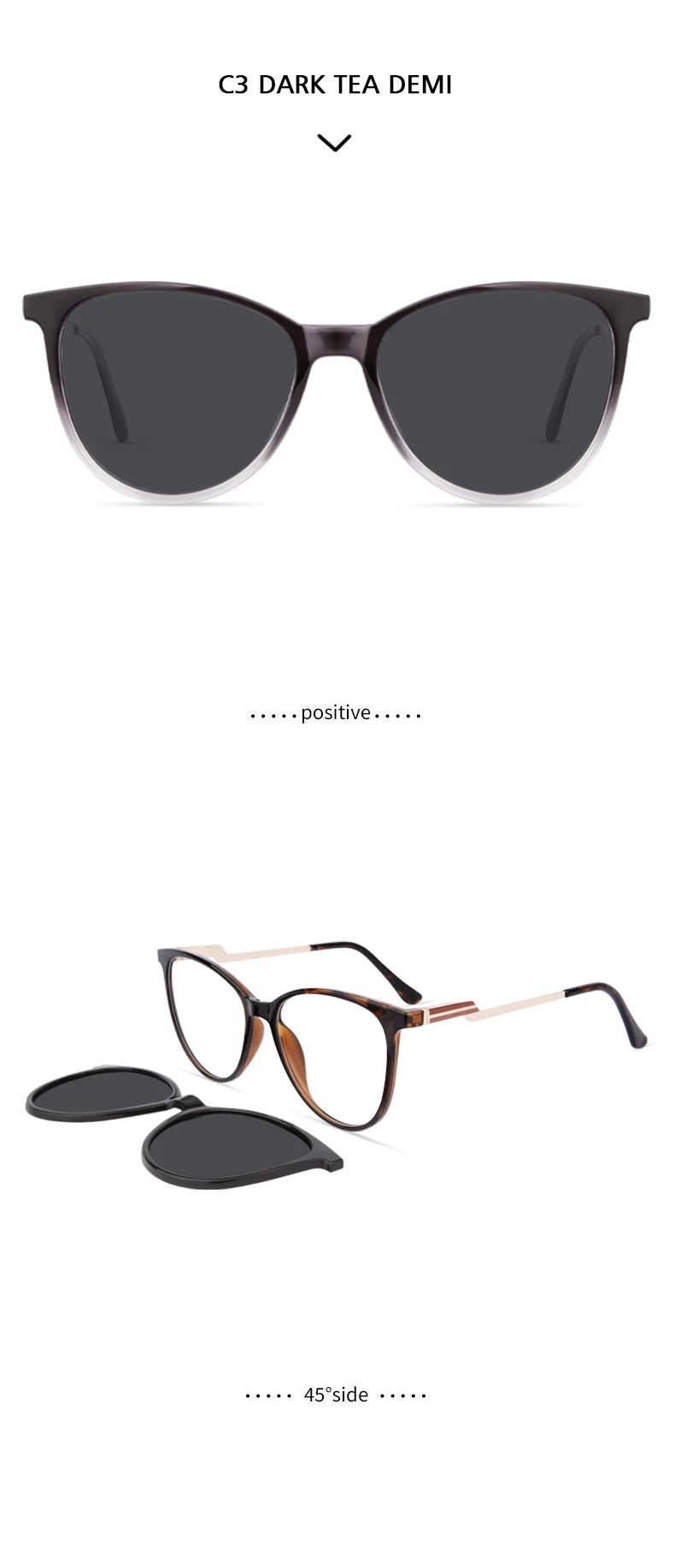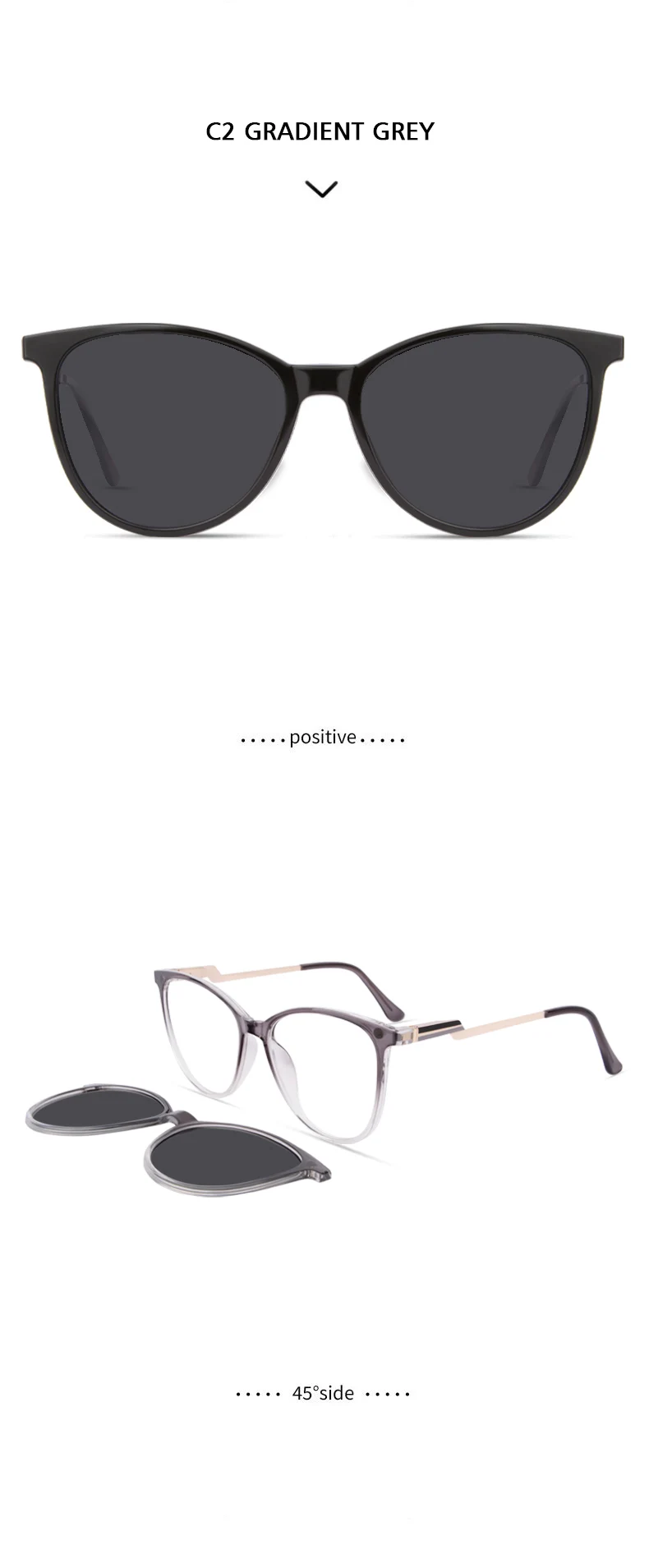 Frame Material: TR90 with Alloy Pin Hinge Temples featuring Polarized Sun Clips. These clip-on sunglasses provide UV protection, making them ideal for outdoor wear while also offering reading clarity.