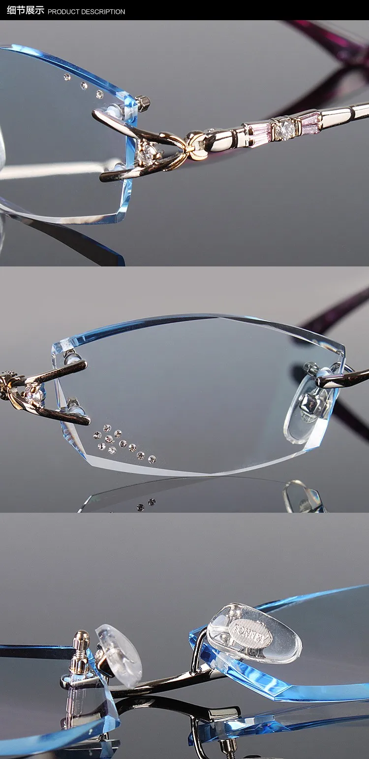 Don't compromise on style or comfort. Upgrade your eyewear collection with our Women's Eyeglasses Diamond Trimmed Rimless Titanium 1006 and experience the perfect combination of fashion and functionality. Boost your confidence and make a bold fashion statement with these exceptional eyeglasses. Order now and enjoy a stylish vision!