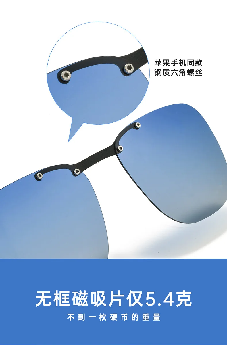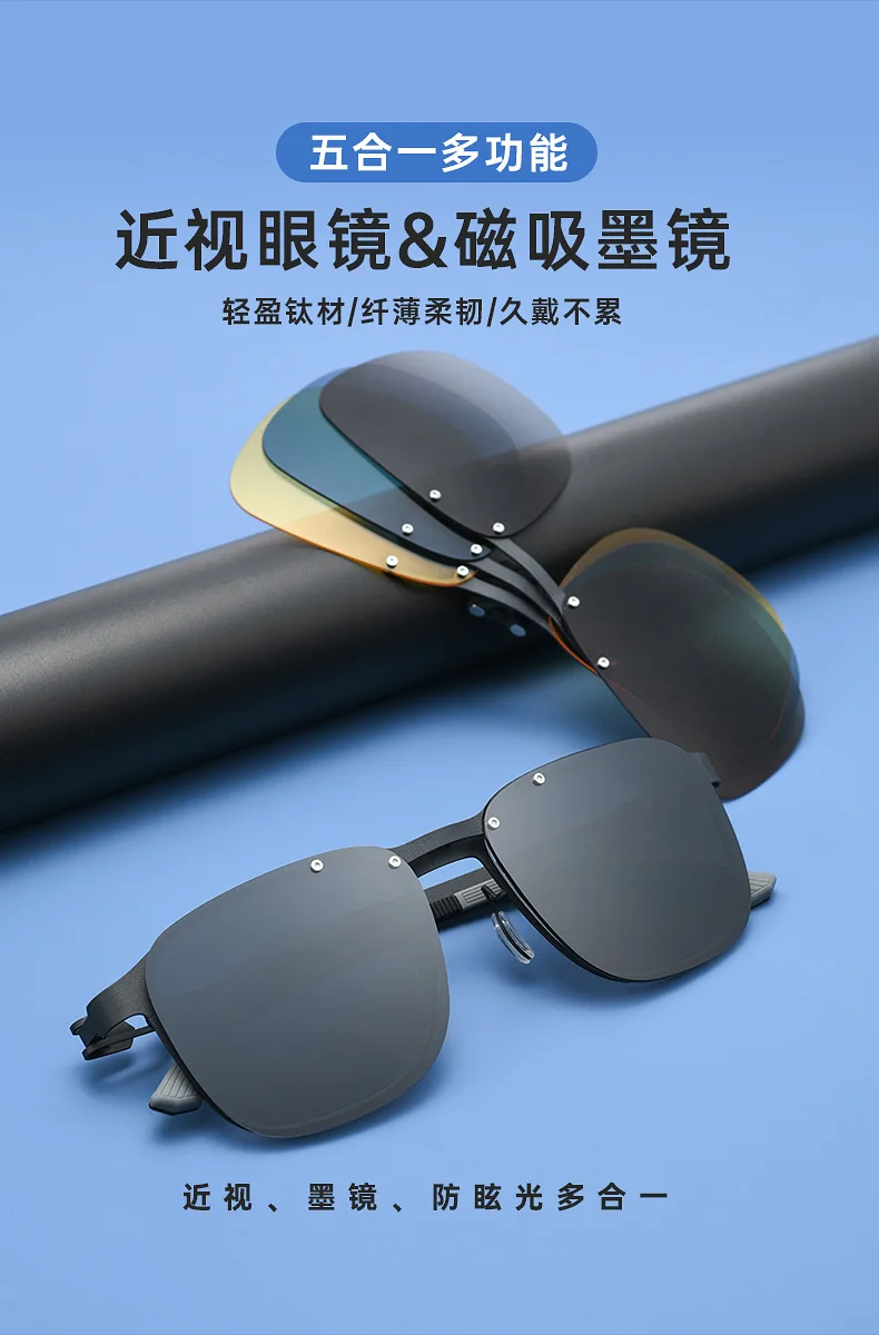 - Innovative magnetized polarized clip-on sunglasses for enhanced vision in various lighting conditions.