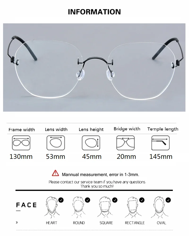 Crafted from high-quality titanium, these eyeglasses are not only lightweight but also incredibly durable. The screwless hinge temples offer added flexibility and a streamlined appearance, making these glasses perfect for everyday wear or special occasions. With a frame width of 130mm, they provide a comfortable fit for a variety of face shapes.