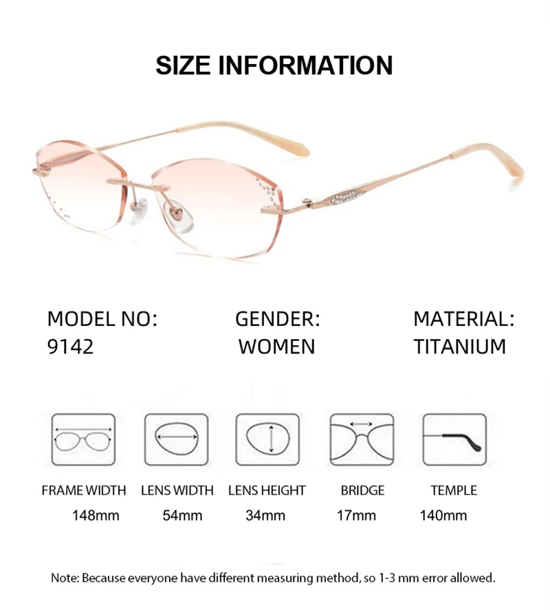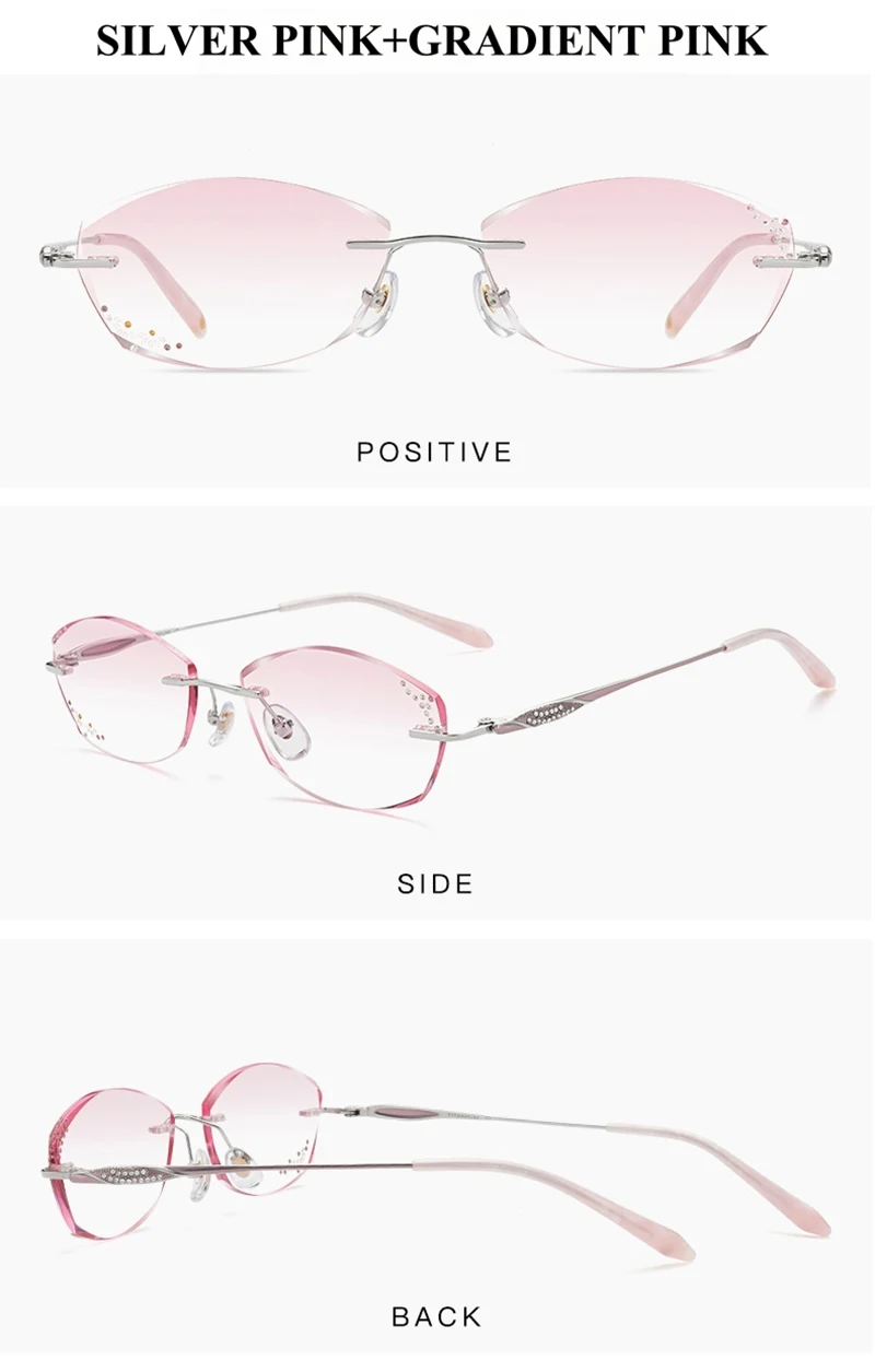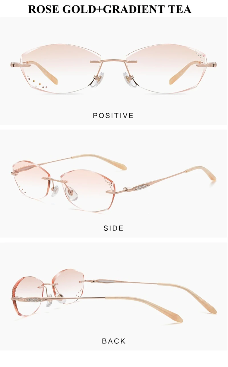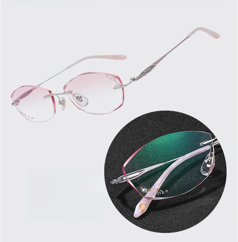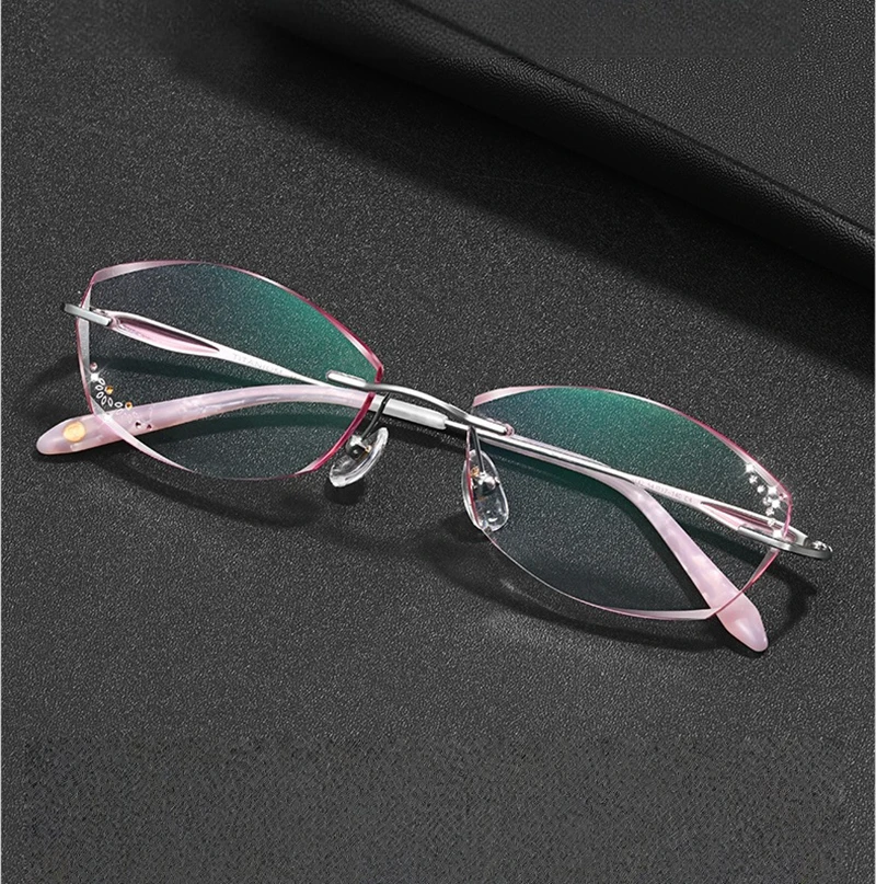 The Summer Flower Titanium Eyeglasses are manufactured in Mainland China, representing quality craftsmanship. The rimless design not only enhances your natural beauty but also offers a broad field of vision.