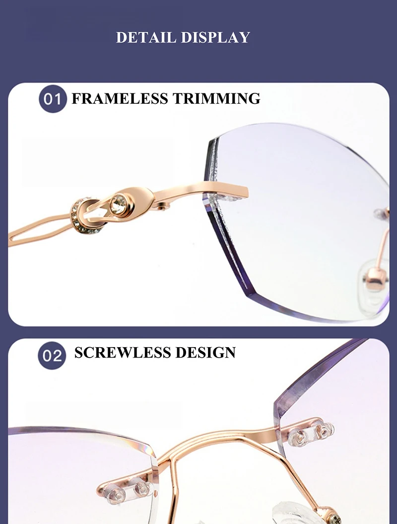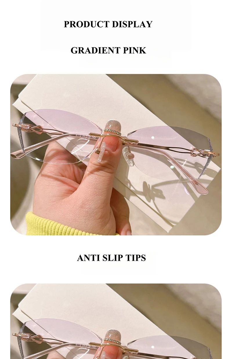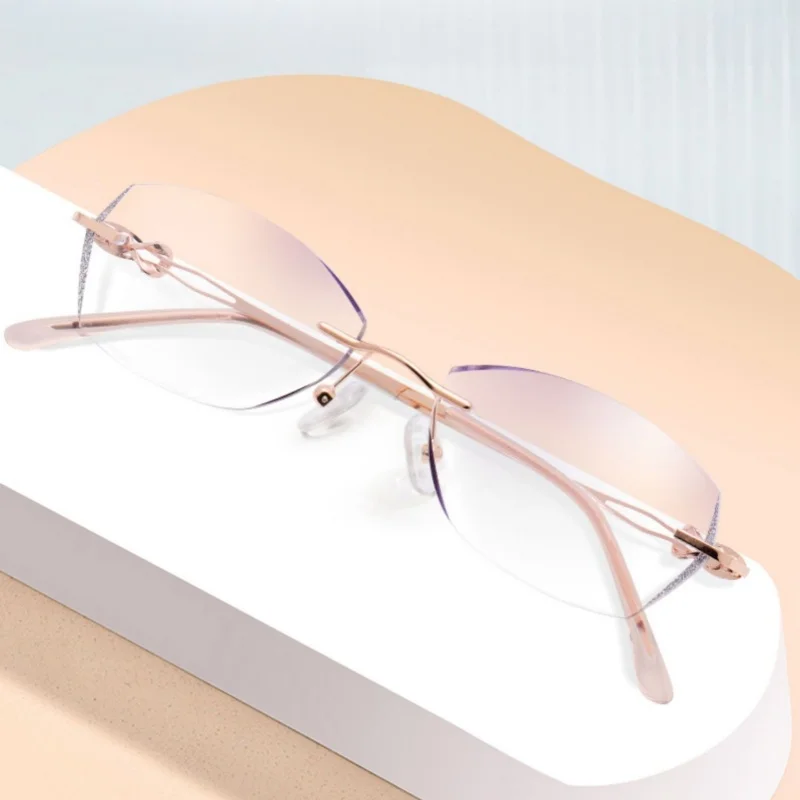 Discover the elegance and charm of the Summer Flower Women's Rimless Oval Titanium Eyeglasses 398112. These eyeglasses are designed for the modern woman who values both style and comfort in her eyewear. The sleek rimless design showcases a contemporary oval frame, perfect for any occasion, be it a day at the office or a casual outing.