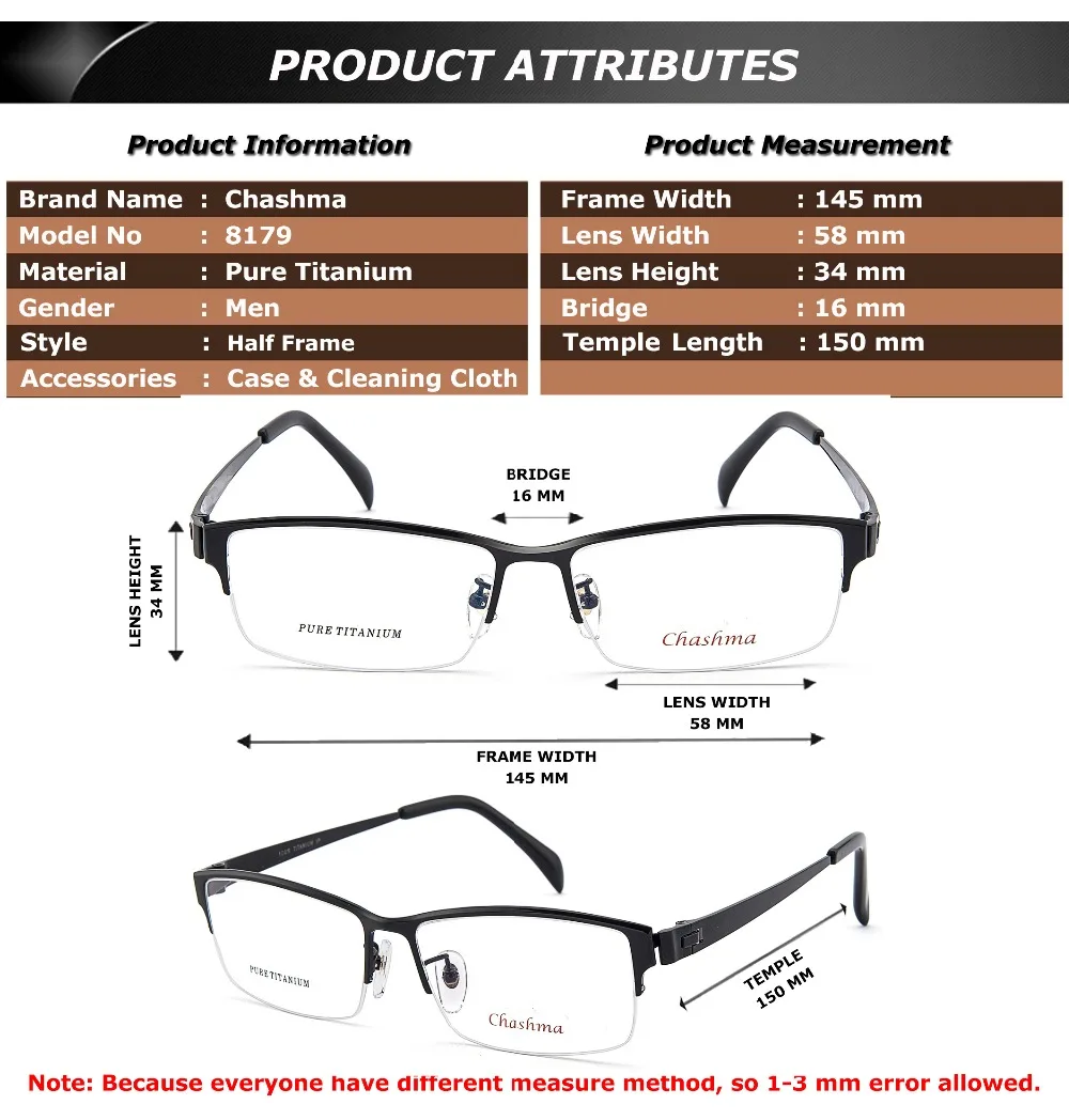Experience comfort and style with Chashma Unisex Semi Rim Big Square Titanium Eyeglasses 98179. Enhance your eyewear collection and make a statement today!