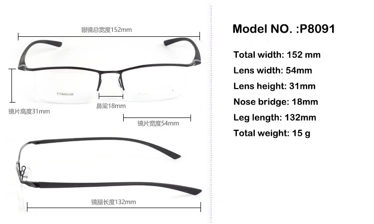 Our Men's Eyeglasses Titanium Alloy Half Rim Small Faces P8190 are not only visually appealing but also offer practical benefits. The high-quality lenses provide excellent optical performance, allowing you to see clearly and comfortably throughout the day.