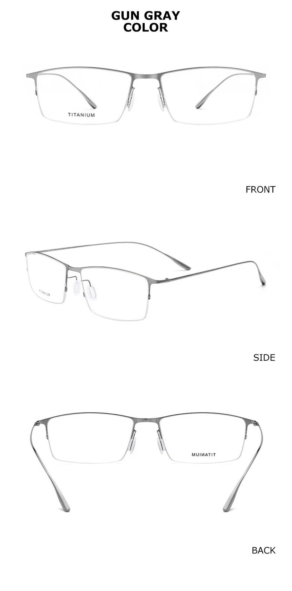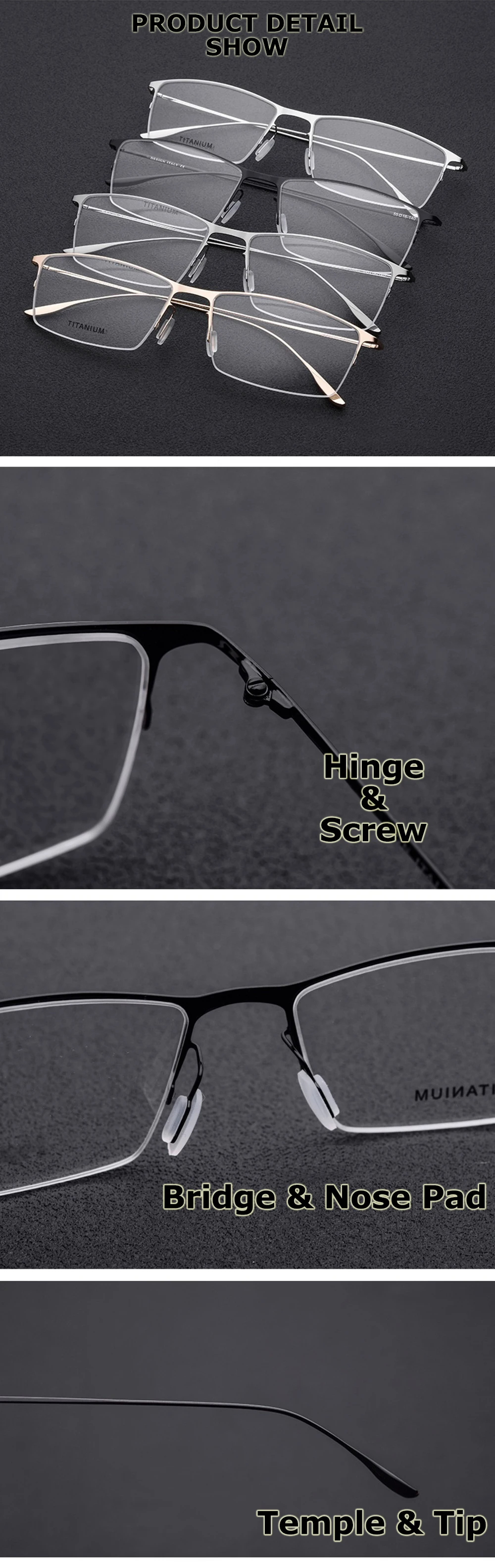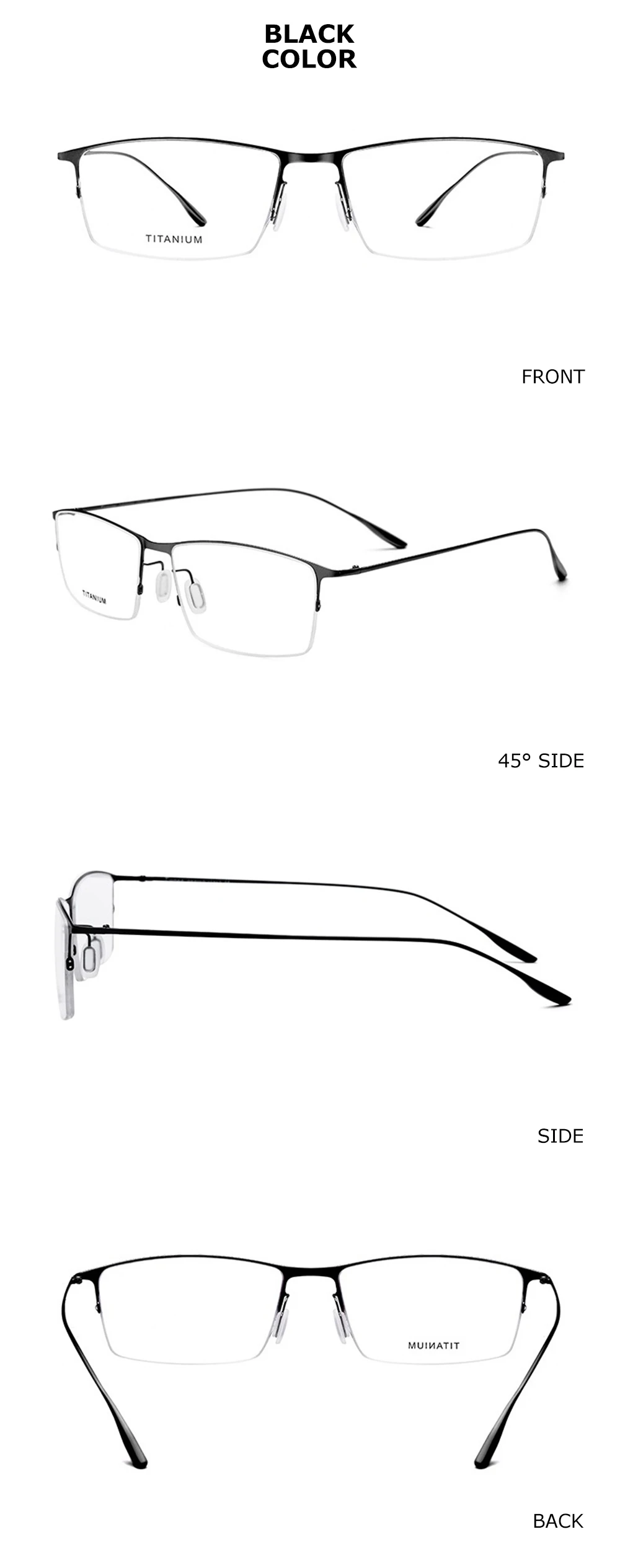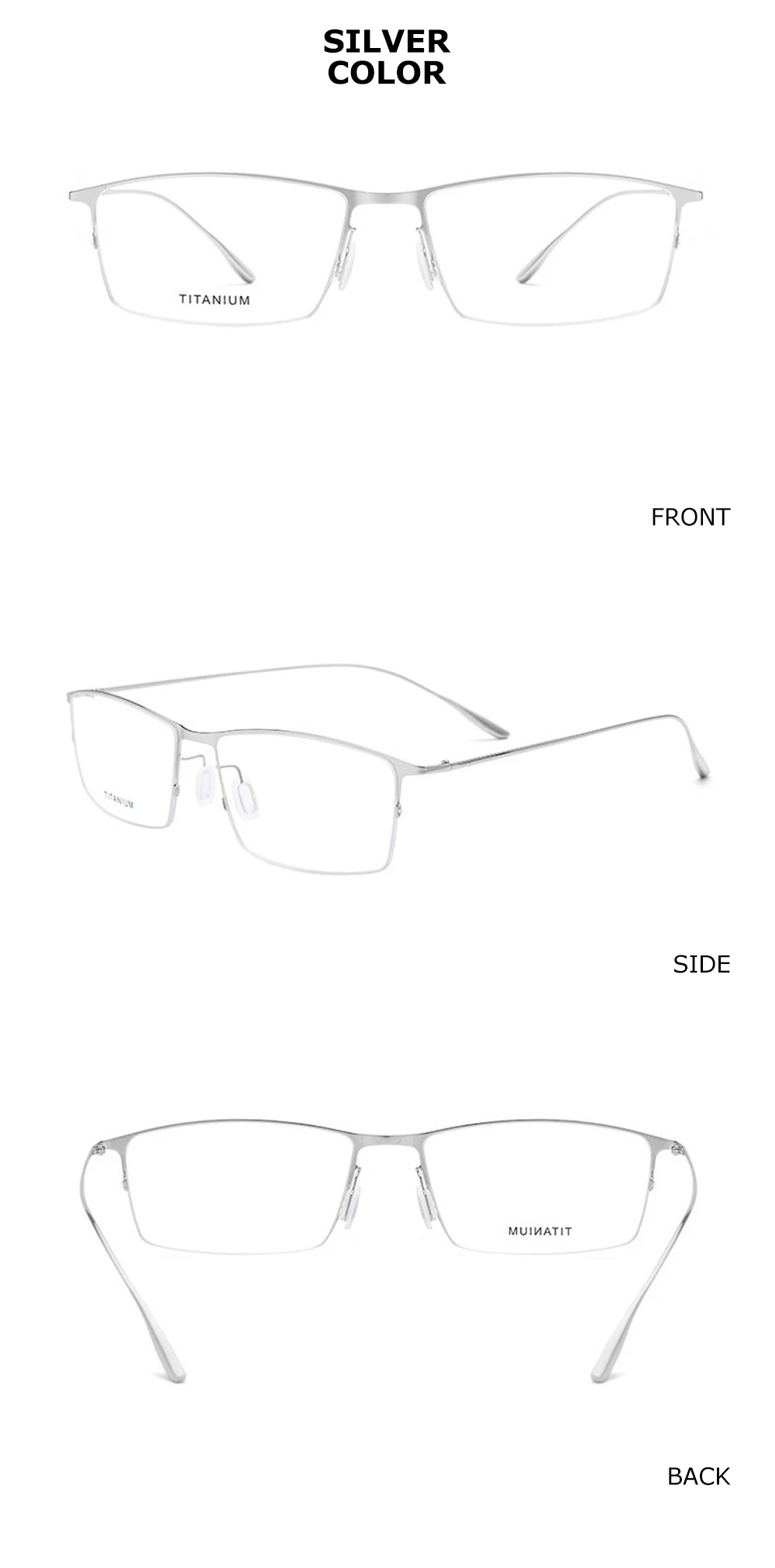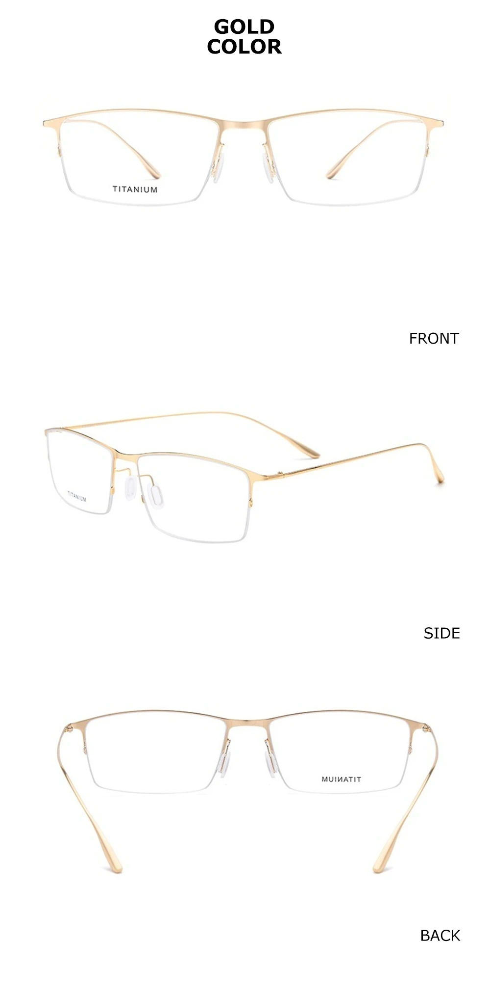 Crafted with high-quality pure titanium material, these frames are not only durable but also lightweight, ensuring ultimate comfort throughout the day. The half-frame design adds a contemporary touch, making them suitable for any occasion.