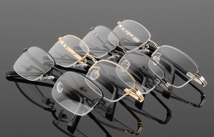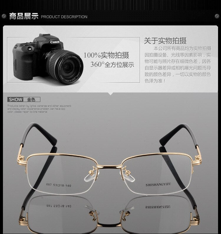 The Men's Half Rim Eyeglasses Alloy Frame S887 are a stylish and durable eyewear option for men. Crafted with an alloy frame, these eyeglasses are both lightweight and sturdy, ensuring all-day comfort and long-lasting use. The sleek half-rim design adds a modern touch to your daily look.